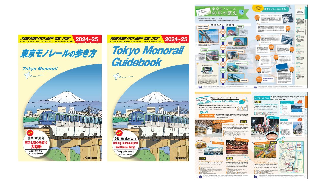 開業60周年を機に、歴代モノレール車両の紹介や都市型モノレールのパイオニアとしての歩みを振り返りました。東京モノレールの撮影スポットや天王洲アイルから大井競馬場前までの1日お散歩モデルなど楽しみ方も提案。空港利用者に向けて、同一内容の英語版も作成しました。