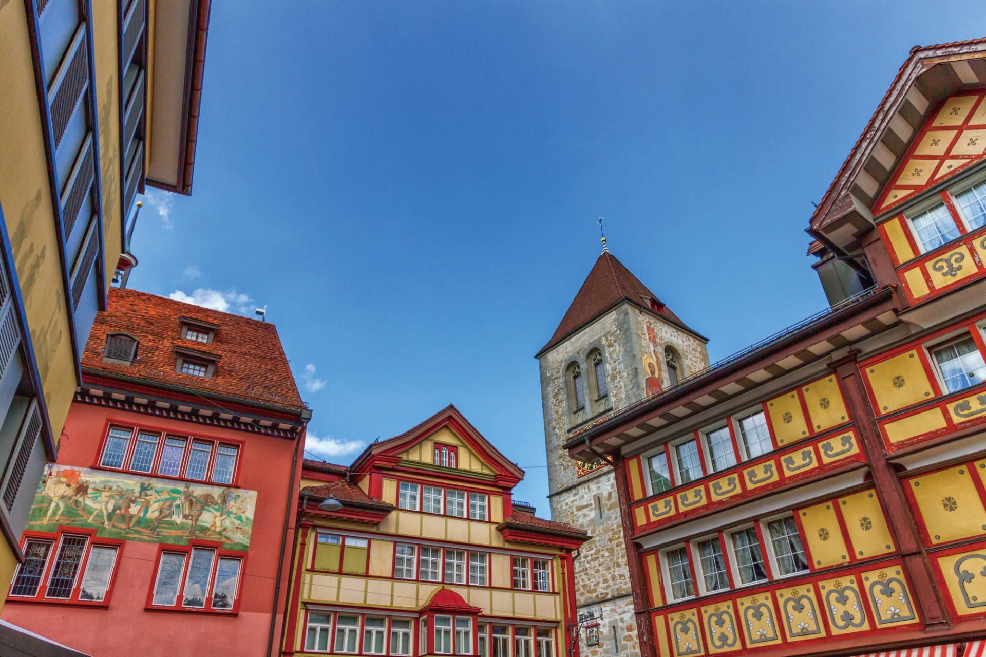 アッペンツェルの町中には、伝統的でカラフルな木造建築が並んでおり、その美しい町並みが訪れる者を歓迎してくれる。建物の多くは16世紀から続く歴史的なものだが、現在も大切に保存されており、まるで絵画のような景観だ。町の中心部には地元のショップやカフェが立ち並び、どこか懐かしさを感じさせる温かい雰囲気が広がる。訪れた際は、手工芸品や地元の刺繍を扱う店を巡ってみよう。職人たちの丁寧な手仕事に触れ、その土地の文化や歴史に思いを馳せるひとときは貴重だ。特にアッペンツェル地方の民族衣装や刺繍は有名で、カラフルな装飾と細やかな刺繍は観光客にも人気だ。
