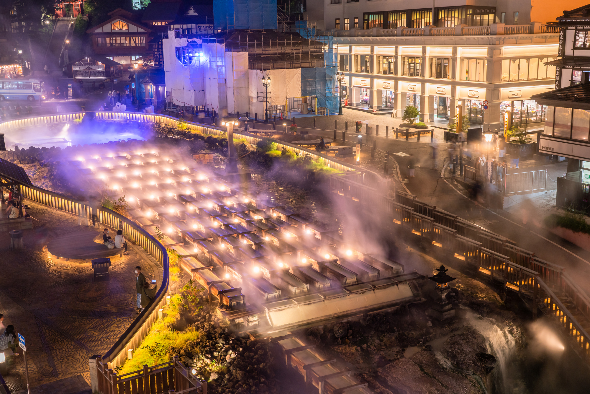 伊香保温泉は、歴史ある石段街が特徴的な温泉地。石段沿いには土産店やカフェが並び、食べ歩きやお買い物が楽しめる。また、黄金の湯と白銀の湯というふたつの異なる泉質を持つ温泉があり、それぞれで異なる癒しを体感できる。夕方には石段がライトアップされ、幻想的な雰囲気が広がる。