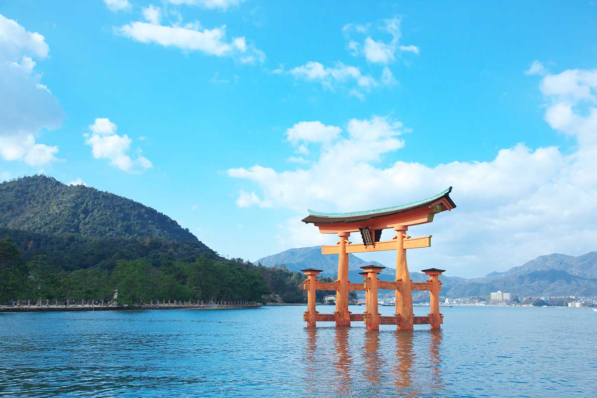 宮島は、厳島神社と鳥居が海に浮かぶ幻想的な景色で知られるスポット。干潮時には鳥居まで歩いて行け、満潮時には舟からその姿を眺めることもできる。島内では紅葉谷公園やロープウェイでの山頂からの絶景も楽しめる。また、名物のもみじ饅頭や焼き牡蠣を食べ歩きしながら、島時間を満喫しよう。