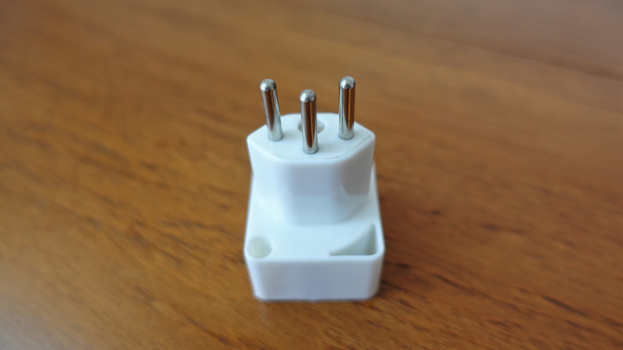 スイスやリヒテンシュタインで使用されているプラグで3本の丸ピンが特徴。中央のピンがアースとなっている。JタイプのコンセントにはCタイプのプラグを挿入できるため、Cタイプの変換プラグのみで十分だ。