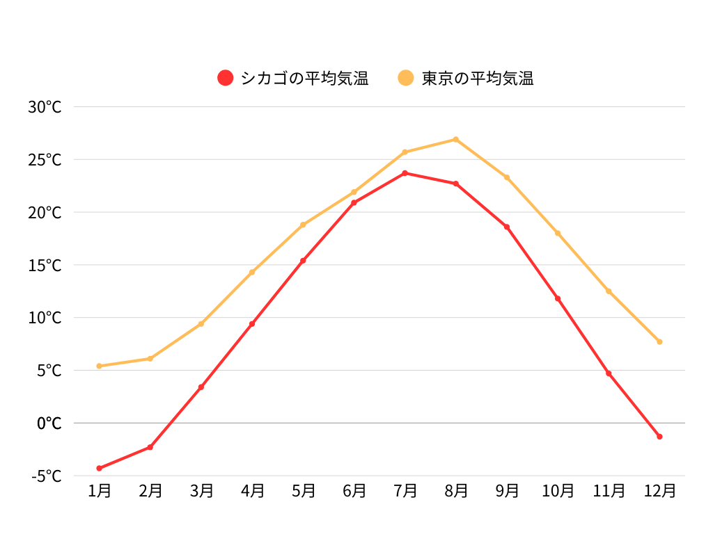「風の町」として知られたシカゴは、四季がはっきりとした気候が特徴です。この記事では、シカゴの気候と季節ごとの服装についてご紹介します。