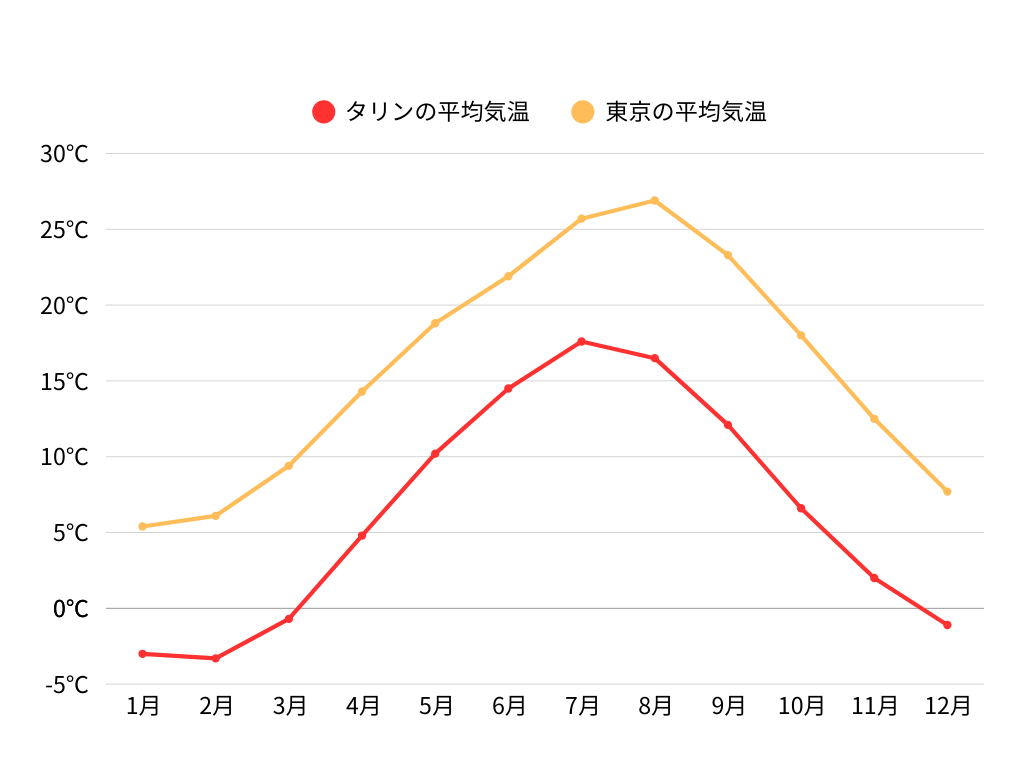 エストニアは、四季の変化が豊かな気候です。春と秋は短く、夏は日中の暖かさと夜の冷え込み、冬は厳しい寒さが特徴です。季節に応じた適切な服装を準備して、エストニアの魅力を存分に楽しんでくださいね。