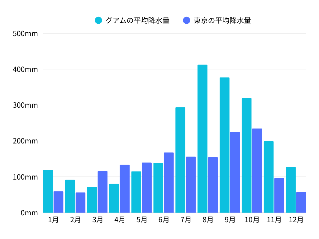 グアムは、乾季と雨季があるものの、常に温暖な気候で楽しめます。旅行の際は、夏服を基本にしつつ、冷房対策として薄手の長袖を持参しましょう。快適な服装で、グアムの魅力を存分に楽しんでくださいね。