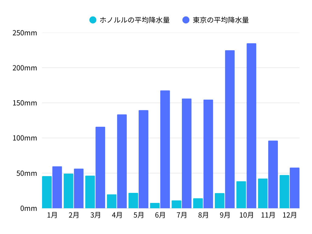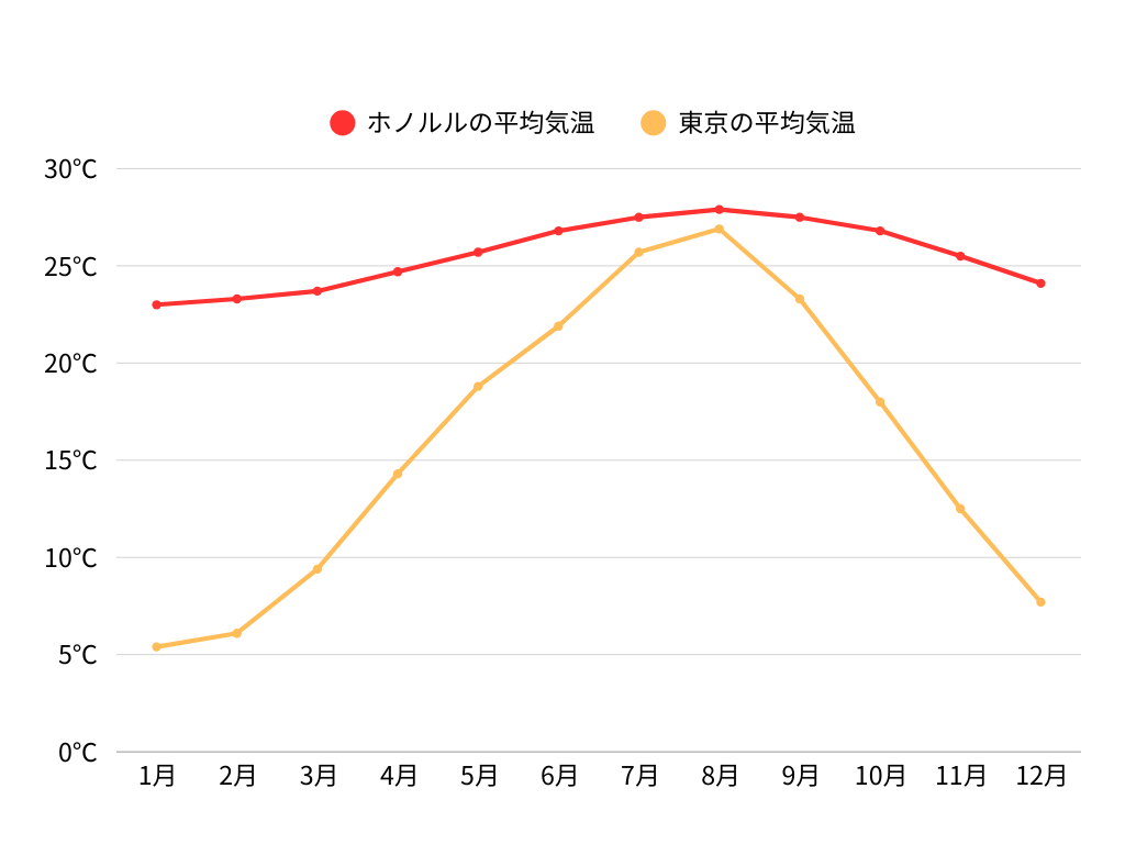 ハワイの気候の特徴と服装、年間の気温と降水量を東京と比較