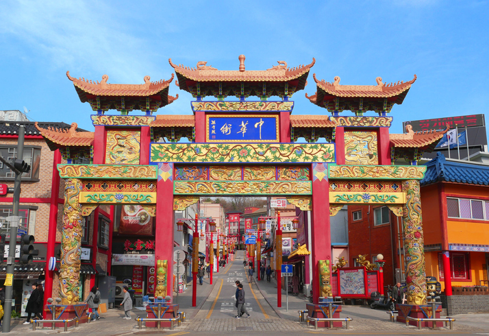 仁川駅東側に広がる韓国最古の中華街。100年以上の歴史があります。名物のチャジャンミョン(韓国式ジャージャー麺)の発祥の地としても有名。かつては中国からの輸入品を販売する店が多かったが、現在では数々の中華料理屋が立ち並びます。壁画通りや中国の歴史を学べる資料館などもあり、食と文化が融合した観光スポットです。