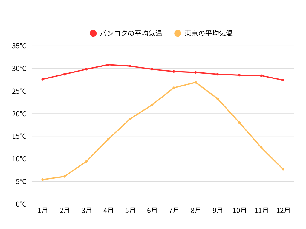 タイは熱帯に位置し、年間を通じて高温の気候が特徴です。本記事では、タイでのおすすめの服装と、季節ごとの気候についてご紹介します。
