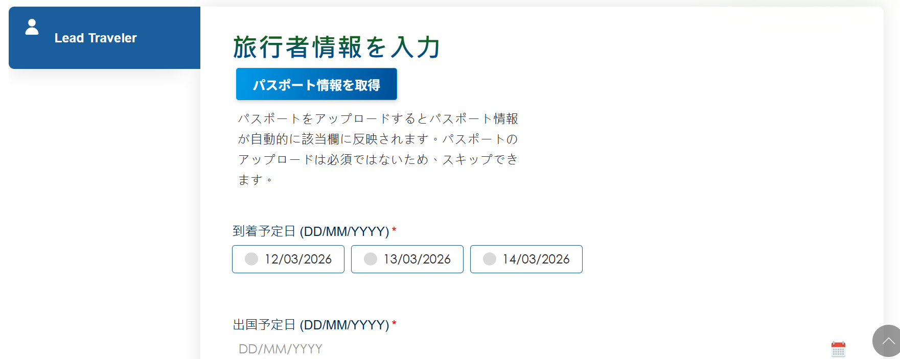 入国情報(渡航情報、滞在情報)を入力していきます。