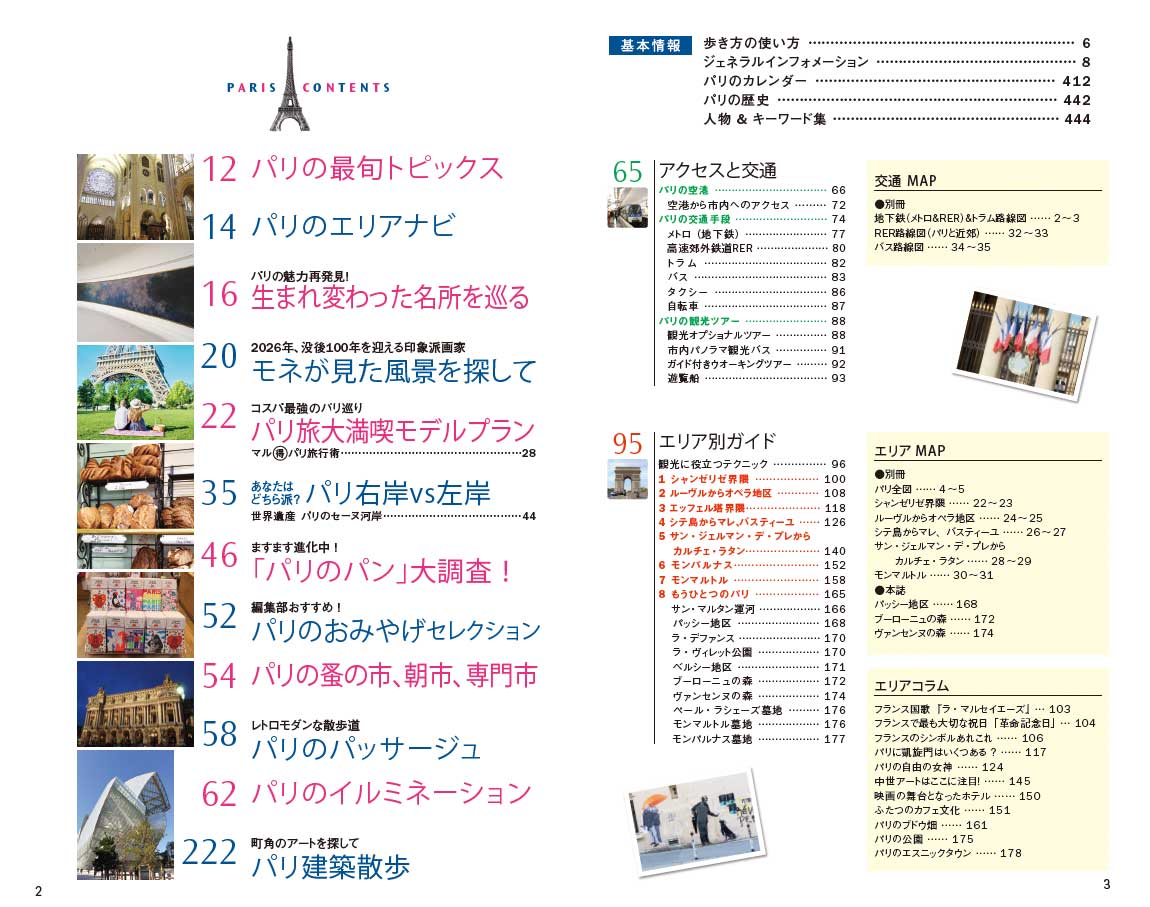 歴史遺産を守りつつ常に未来を見据えて進化を続けるパリ。最旬情報はもちろん、パリをお得に楽しむテクニックなど、はじめてでもおひさしぶりでも安心して旅するためのとっておき情報が満載!