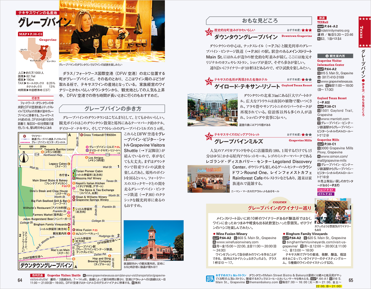 ダラス、グレーブバイン、アーリントン、フォートワース、ヒューストン、ガルベストン、サンアントニオ、オースチン、ヒルカントリー、エルパソ