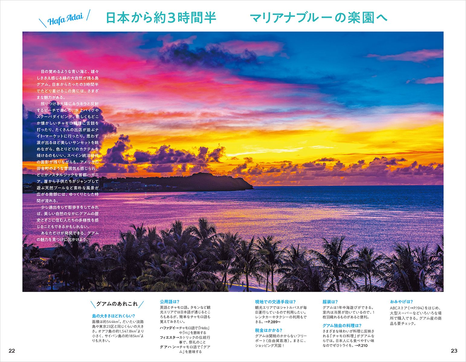 【片道約3時間半のハッピーリゾート・グアム!】海遊びからグルメ、ショッピング、ホテル、歴史や文化まで網羅。グアムを誰よりも満喫するための詳細ガイドブック! 北部や南部の詳しいエリアガイドも充実し、さらにパワーアップしたグアムをご紹介します。