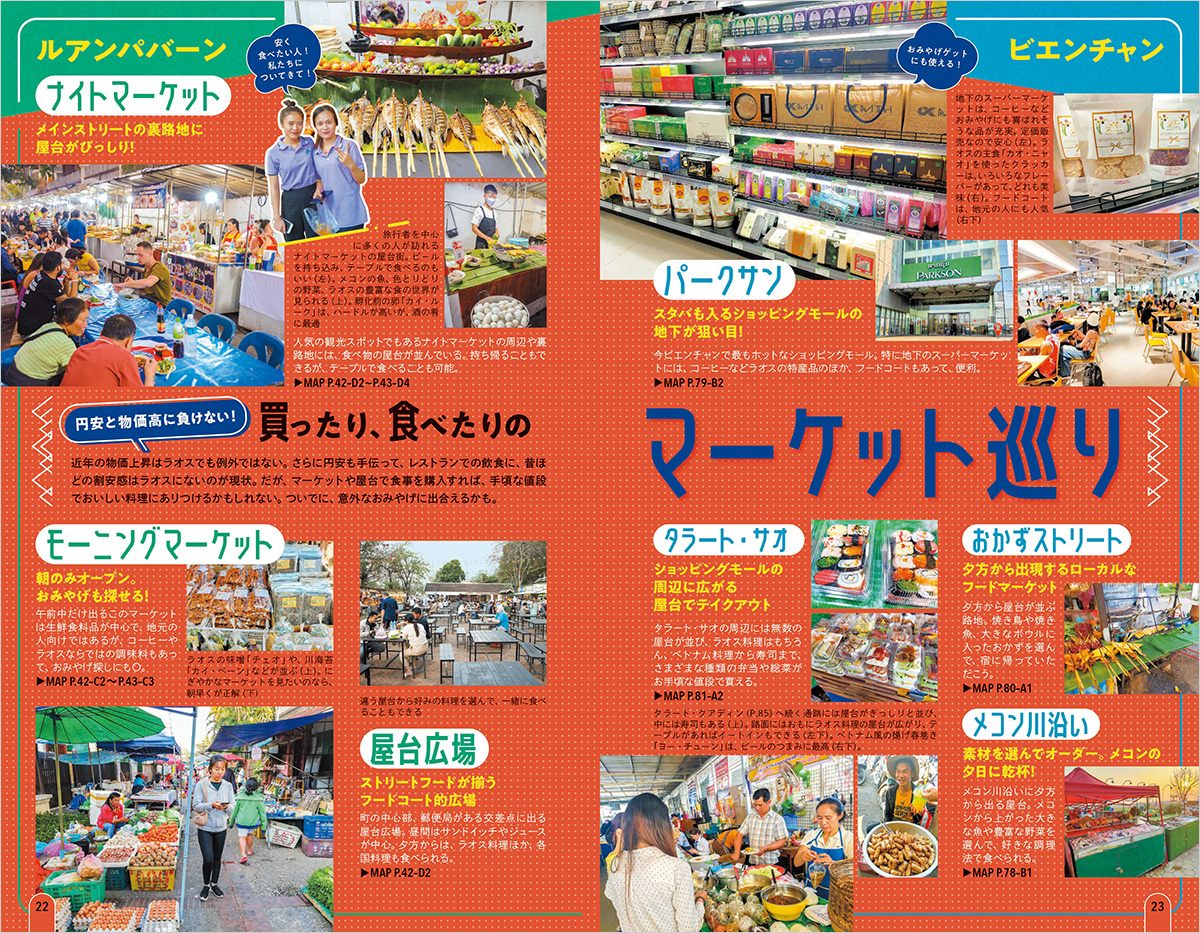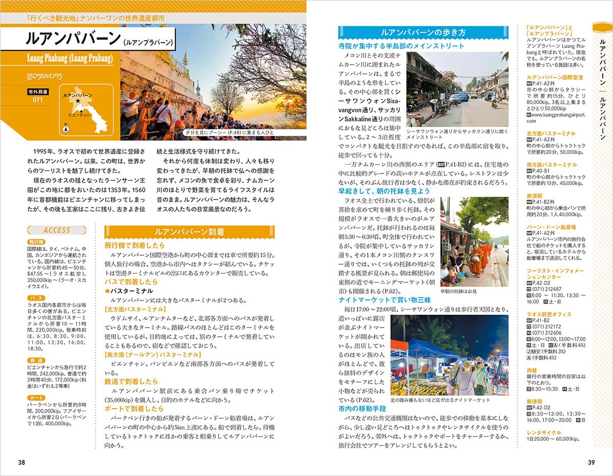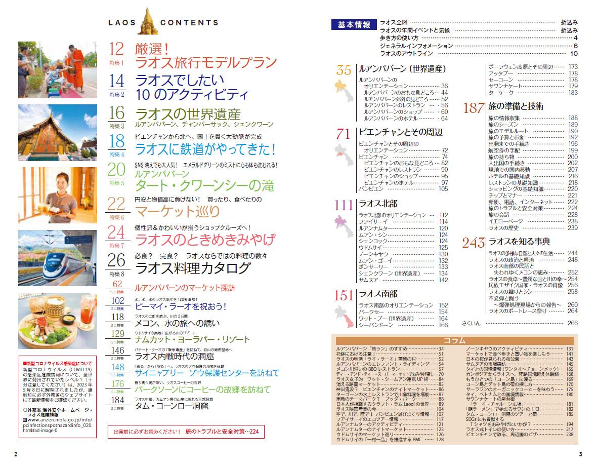 巻頭では2021年に開通したラオス鉄道を紹介。レストランやホテルなどは最新情報を調査し、たっぷりと掲載しています。