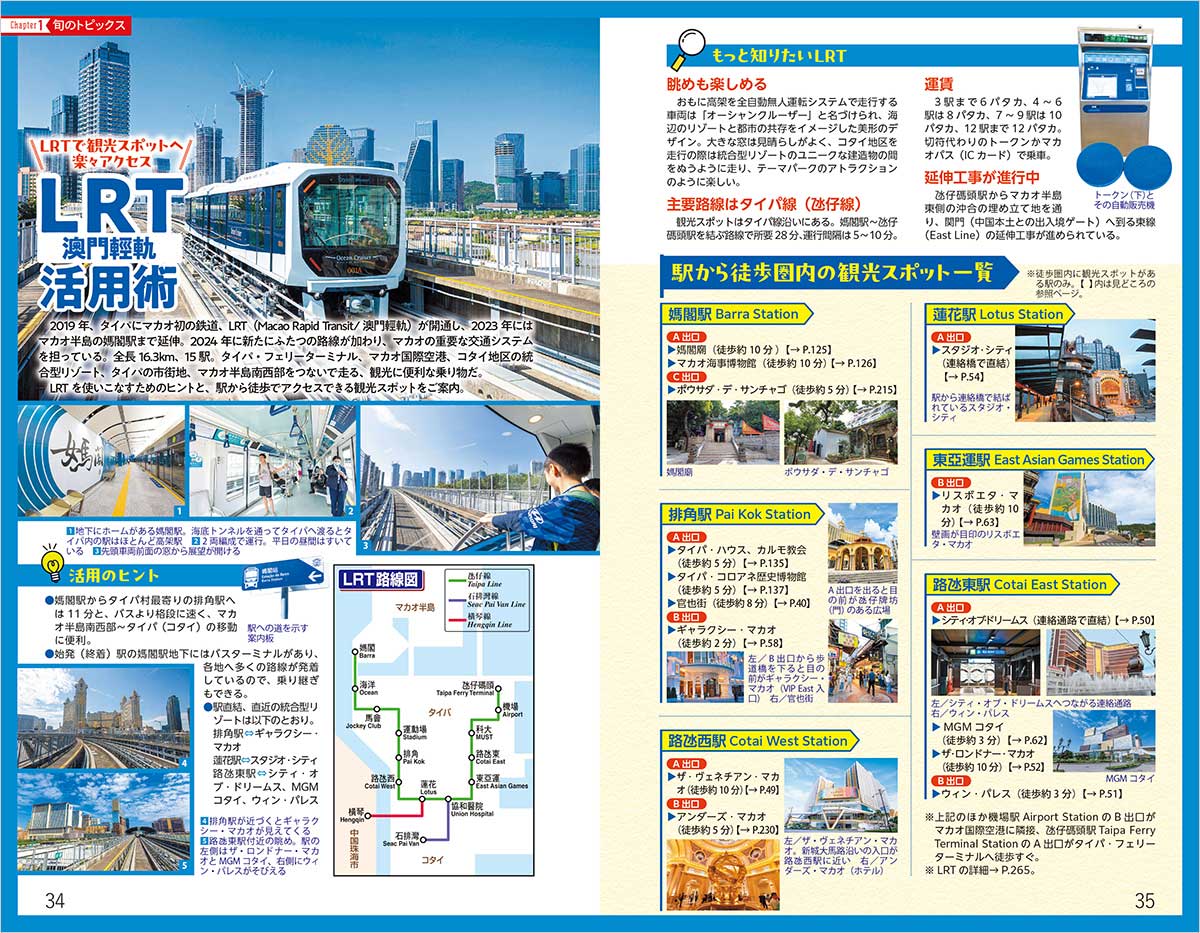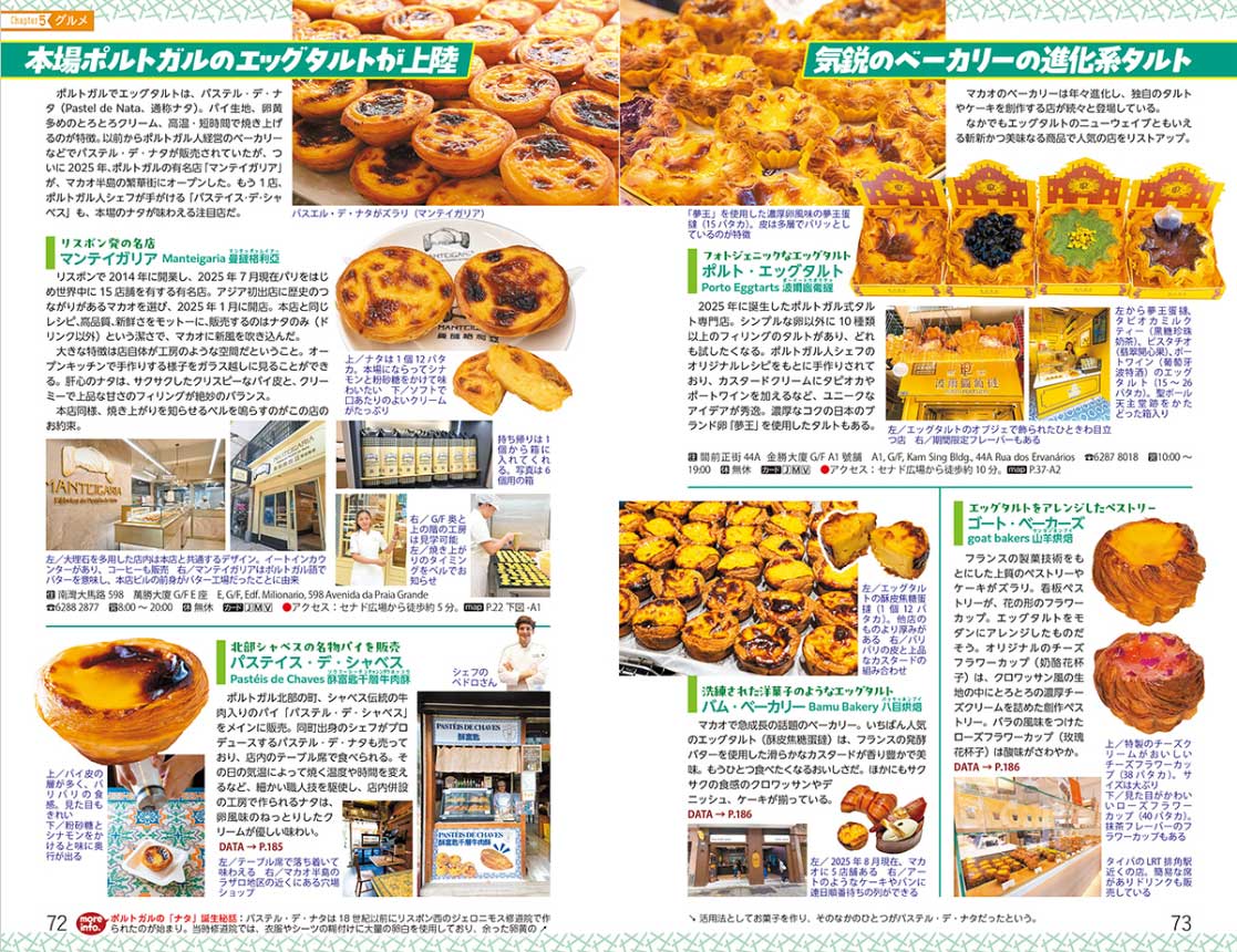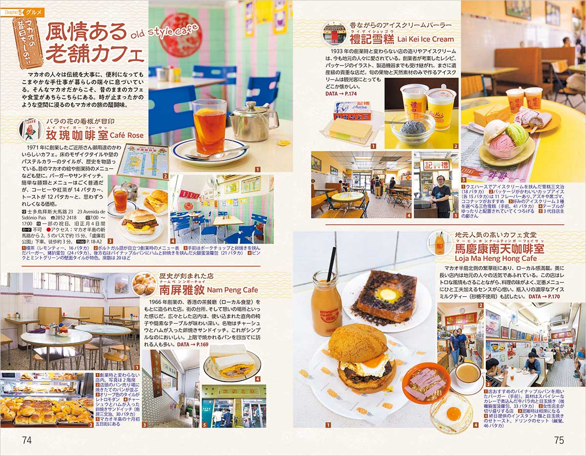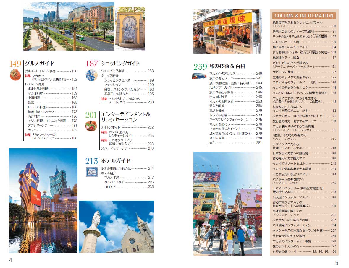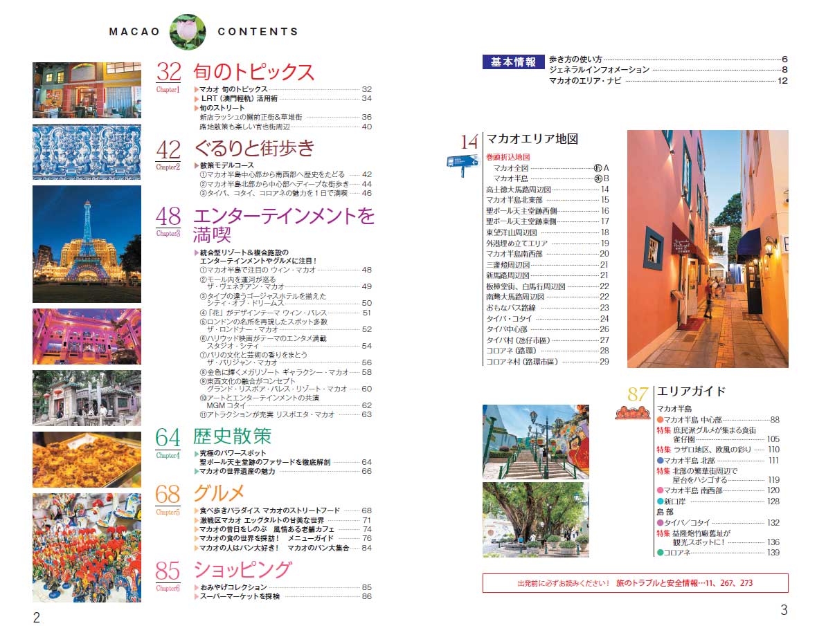 世界遺産や観光スポット、地元の人に愛されるマカオ料理&本格ポルトガル料理、ローカル気分を味わえるストリートフード、お得なスーパーマーケット活用術など、マカオをもっと楽しく、もっと深く旅するためのお役立ち情報を掲載。カジノの遊び方や、最新のハウス・オブ・ダンシング・ウオーターなど、大注目のエンタメ情報も盛りだくさん!聖ポール天主堂跡のファサード徹底解説や、街歩きの裏ワザ、そのままの姿で残しておきたい郷愁にも、じっくりと迫っています。