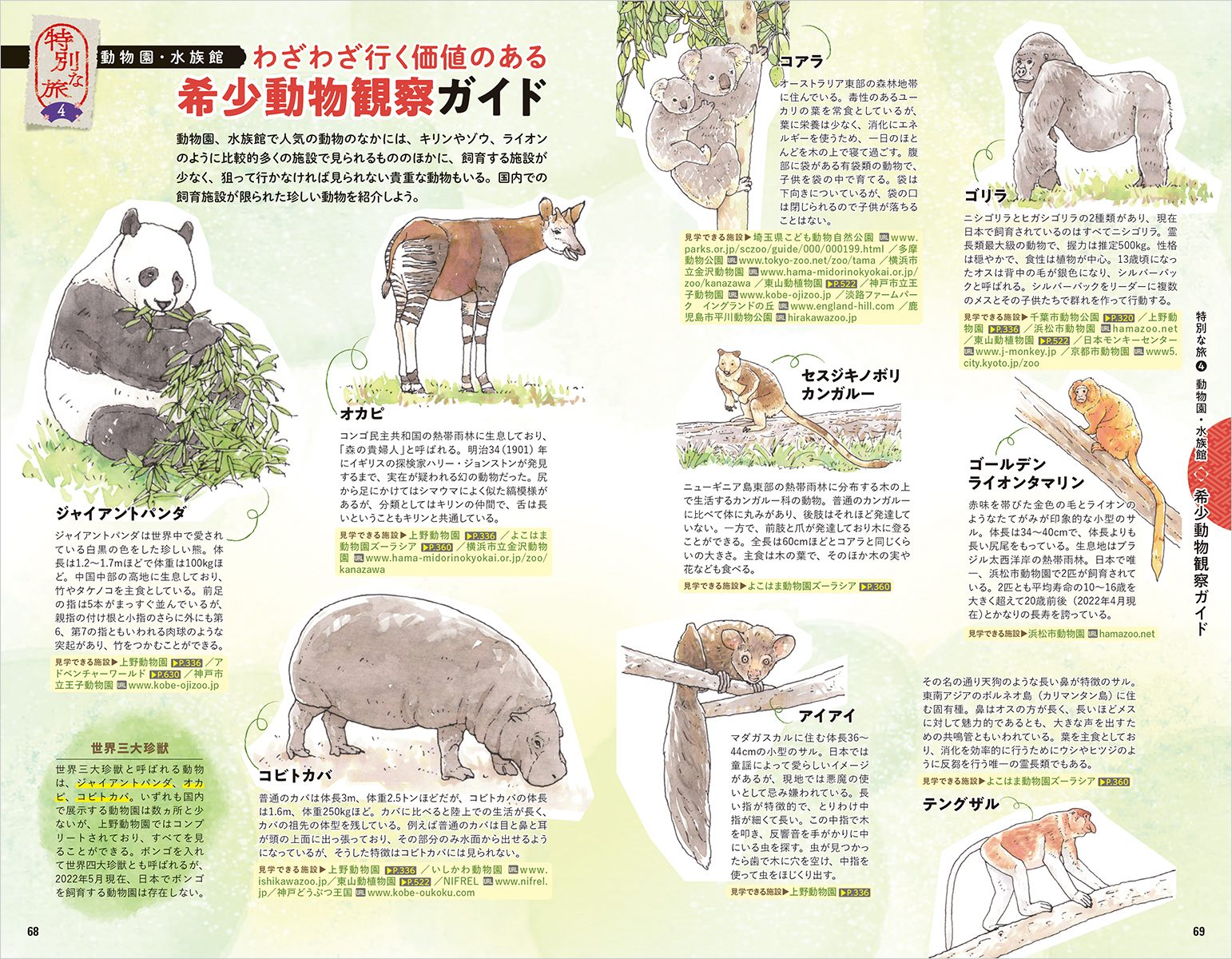 すべての都道府県を18~21ページで紹介する県別ページは、見どころ・読みどころ満載! 旅をする上でマストな施設から穴場スポット、ローカルグルメ、伝統工芸、お国自慢なども掲載し、あなたの出身県も、お住まいの町も、愛情たっぷりに仕上げています。