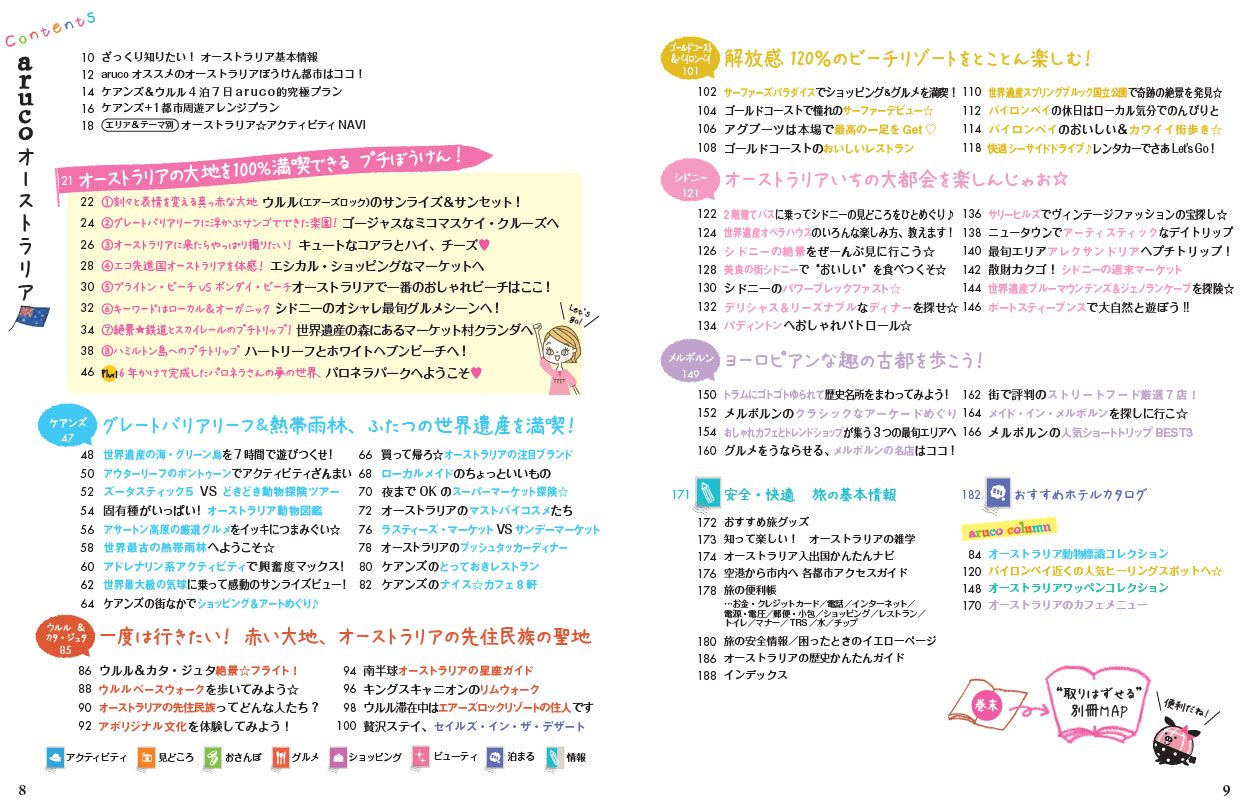 3年半ぶりの改訂版には最新情報が満載!憧れのウルル(エアーズロック)サンライズ&サンセット情報や、エコ先進国でのエシカル・ショッピング指南、ケアンズの最新アクティビティに人気急上昇中のメルボルンやシドニーの最新アドレス、注目の町バイロンベイなど、最旬のオーストラリアをギュッと一冊にまとめました。大都会からビーチリゾート、はたまたアボリジニの聖地まで、ネイチャー大陸オーストラリアへいざぼうけん♪