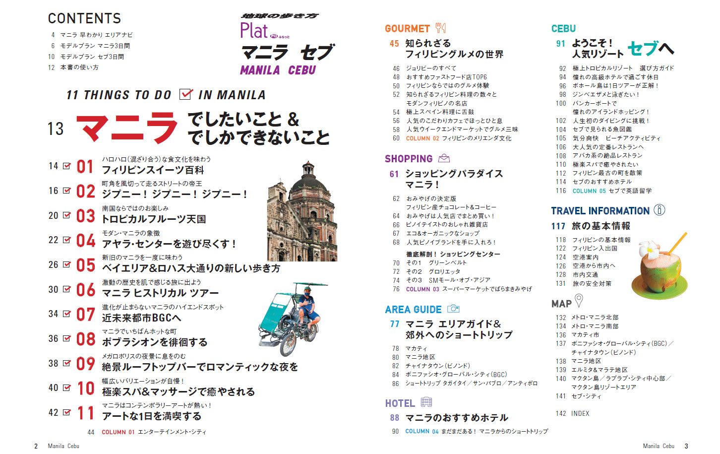 限られた時間のなかで効率よく旅を楽しむための軽くて持ち歩きやすいコンパクトなガイド。マニラの最新の町歩き情報はもちろんのこと、フィリピンならではのエンタメや癒やしのスパ、歴史情報までもカバー。セブを楽しむためのリゾート選びガイドも必見。