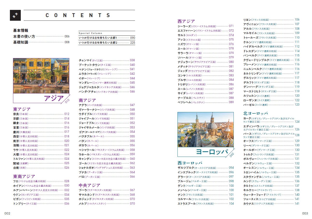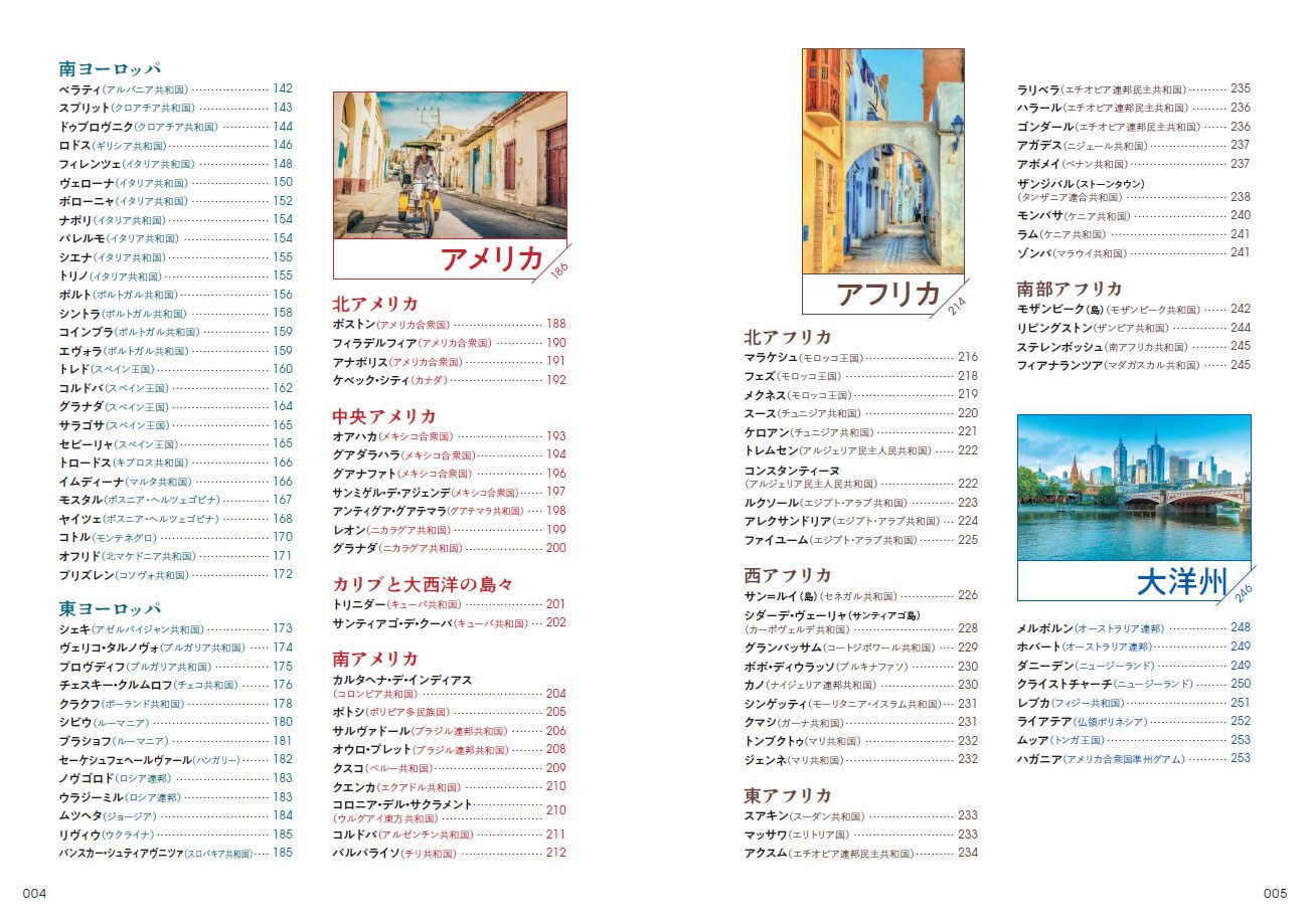悠久の歴史を今に伝える美しい古都を町の見どころや旅の雑学とともに紹介。世界119の国と地域より218の町を掲載