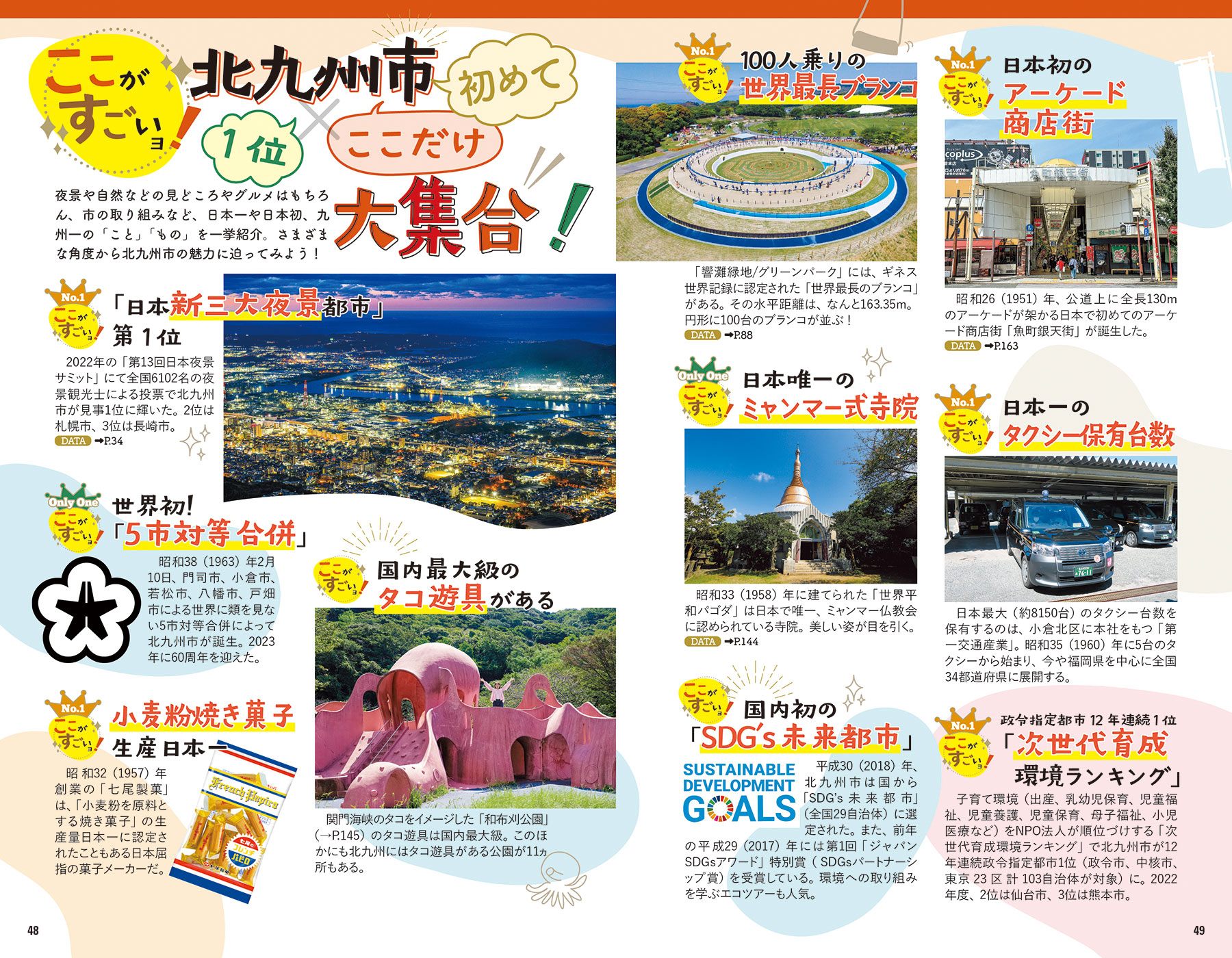 ものづくりの街で生まれた世界遺産や、数多ある発祥グルメ、海と山に囲まれた地理、エンタメの聖地など5市合併の歴史をもつ北九州市をとことん深掘り! 門司や小倉はもちろん全7区をディープに解説します。北九州愛にあふれた地元っ子のクチコミも多数掲載