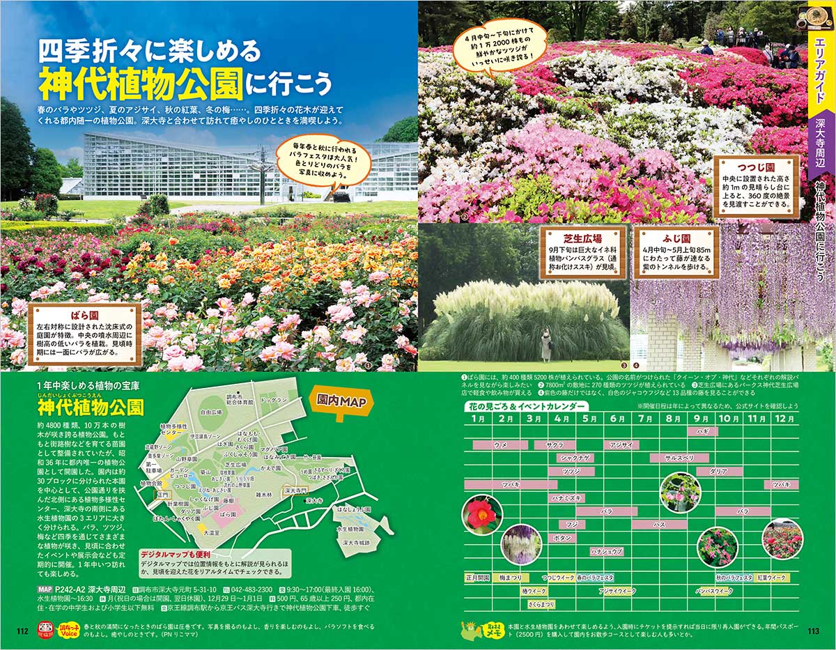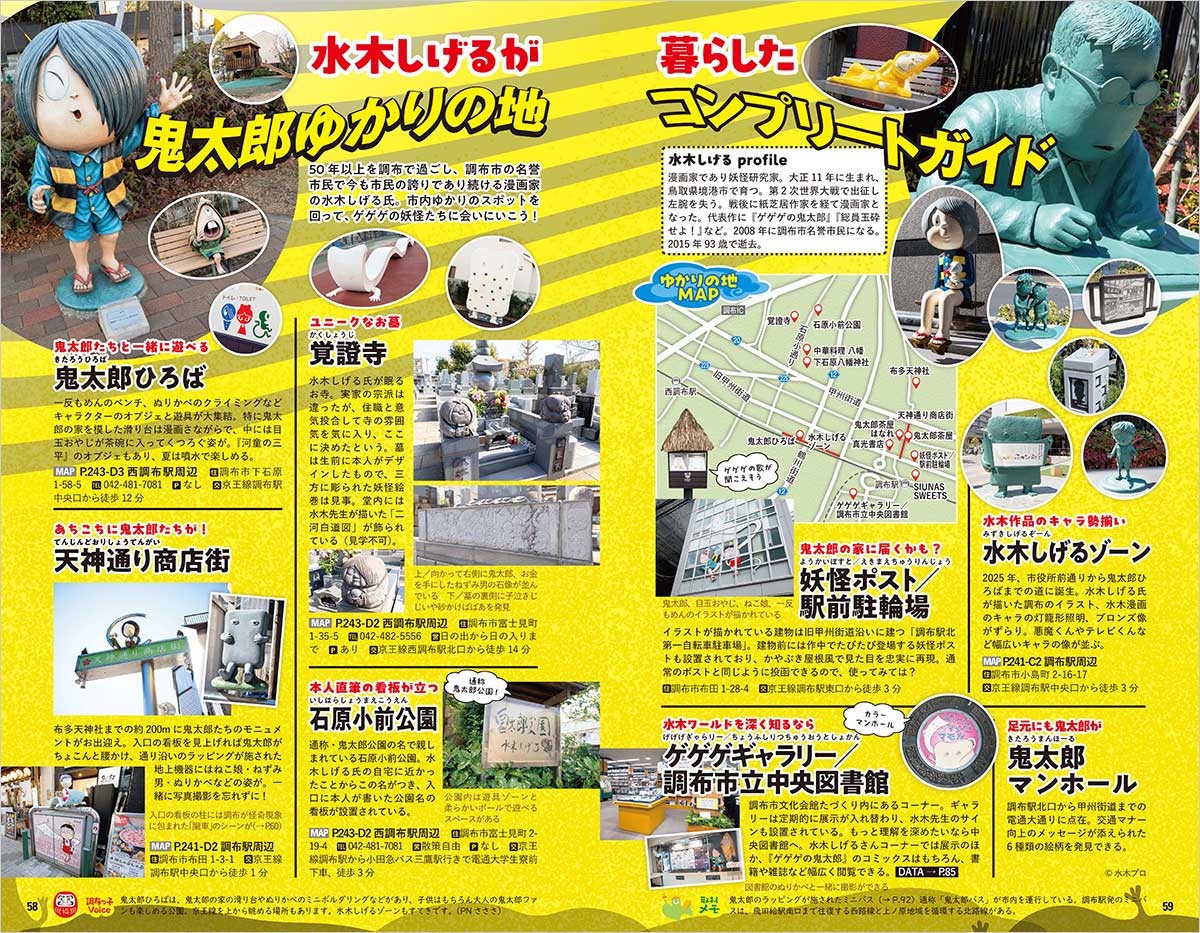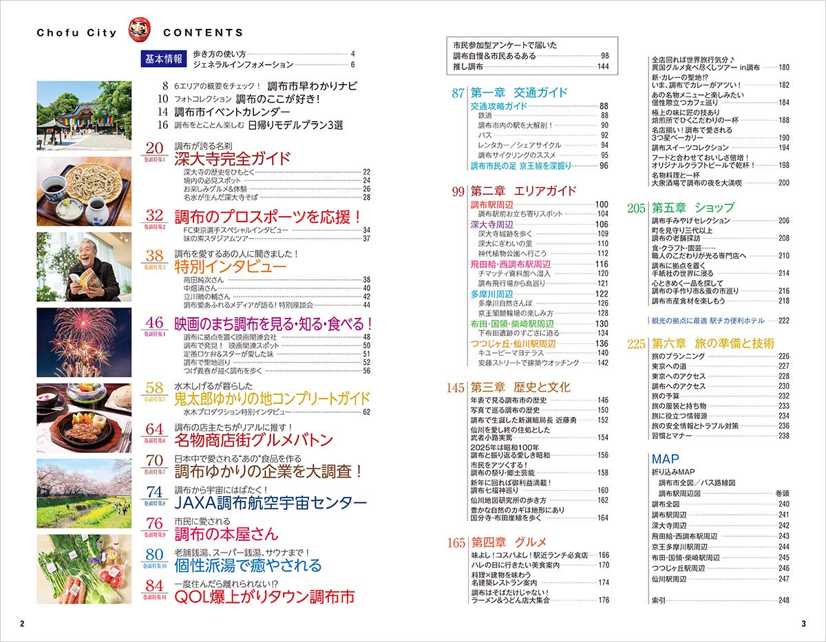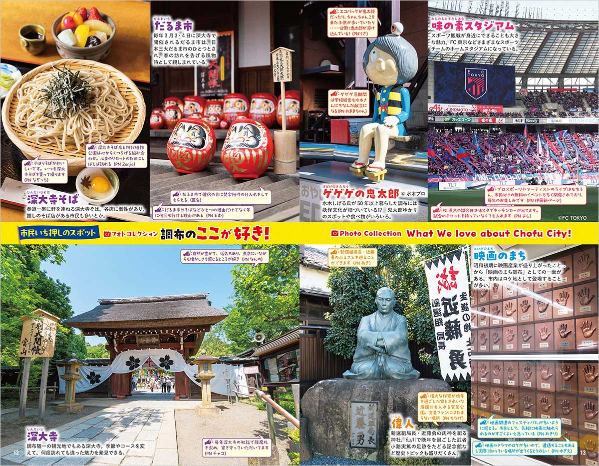 市制70周年を迎えた魅力あふれる街を地元目線で完全ガイド。深大寺をはじめとした歴史的名所や四季折々の景色を楽しめる公園施設、市民に愛される商店街、映画や鬼太郎ゆかりのスポットまで満載!
