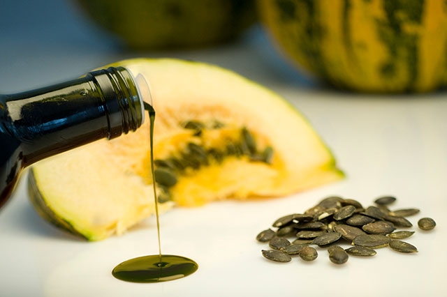 さらにシュタイヤマルク名産として有名なのが、黒い宝石とも呼ばれる「シュタイヤマルク州パンプキンシードオイル(Steirisches Kürbiskernöl)」です。カボチャの種を炒って絞ったオイルで、シュタイヤマルク産のものはフランスのシャンパンと同じように厳密なブランド保護がなされています。