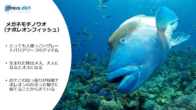 グレートバリアリーフの大きさやそこに生息する珊瑚や魚類の豊富さ。フランクランド島へのツアーは常に環境に配慮して、人数限定で催行していること。さらにクラウンフィッシュ(ニモのモデル)やナポレオンフィッシュはとってもフレンドリー。そして生きている途中で性転換していく!というなかなか知られていなかったお話のほか、最近ジュゴンが戻ってきたことや、例年11月末にはサンゴの産卵時期を迎え、海の中に入るととても貴重な体験ができることなども画像と共にご紹介。