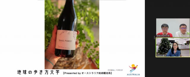 広大なオーストラリアでは地形や土壌、気候の違いによってブドウ品種のさまざまあり、さらにワインメーカーによって異なるワイン作りの哲学から、さまざまなワインを楽しむことができるオーストラリアワインの魅力、を動画や画像や見ながら、ご紹介をいただきました。