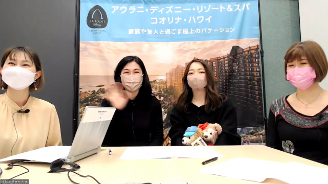 案内人には、ディズニー・ディスティネーション・インターナショナル澤田智子さん、約19万人のフォロワーをもつアメブロを始め、YouTubeやインスタグラムでも日夜ディズニー情報を発信していらっしゃる吉田さんファミリーのお母さん、よしかさんと娘さんのみくさん、地球の歩き方ハワイ担当 日隈理絵の4名で「アウラニ・ディズニー・リゾート & スパ コオリナ・ハワイ(以下アウラニと表記)を満喫する4泊6日のプラン」をテーマにアウラニ滞在の魅力をお伝えしました。