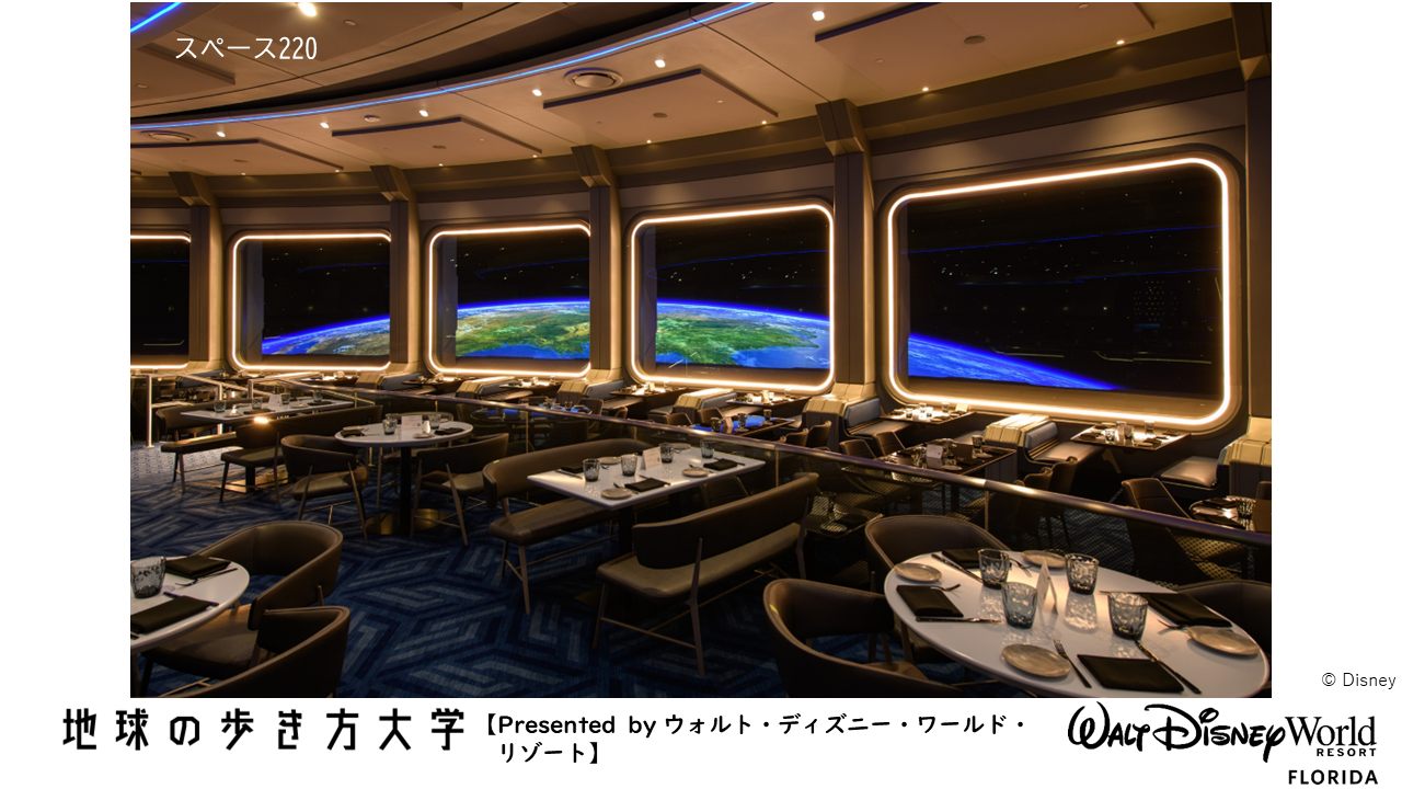 夕食は大人気のSPACE220レストランへ。「宇宙ステーションのなかがレストランとなっていて、アトラクション的要素も大満足」とみくさん。「動く地球を眺めながらおいしい食事が楽しめるのでおすすめします」とよしかさん。