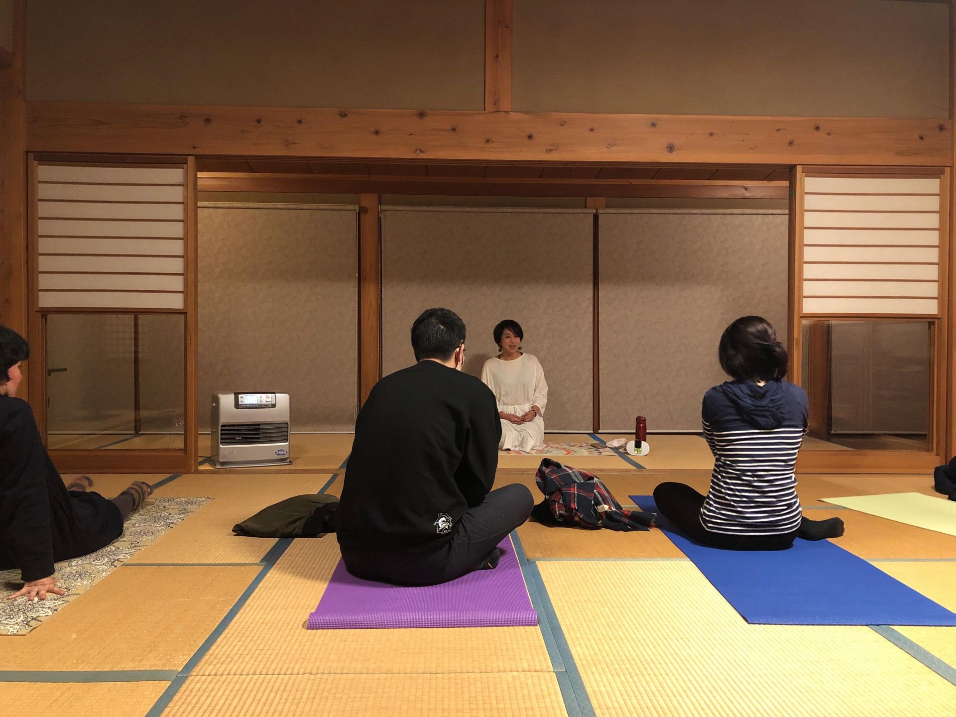お風呂でゆったりした後は、離れで「瞑想ワークショップ」に参加。アナウンサーの及川徳子さんを講師に、朗読を聞きながら瞑想を行います。普段時間をとって自分の内面に向き合うことはなかなかないのでとても新鮮な体験で、いろいろな気づきを得られたワークショップでした。