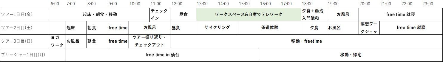 「リフレッシュをしながら働く」を目標に参加したワーケーションツアーでしたが、目標は見事達成。特に今回訪れたのが湯治宿だったということは達成要因の一つではないでしょうか。始業前にひと風呂浴びて体を目覚めさせ、仕事に挑む。仕事が終わり、一日のデスクワークで凝り固まった体をゆっくりほぐす。日常の合間にほっと一息を挟むことで、適度にリフレッシュしながら平日を効果的に過ごすことができました。