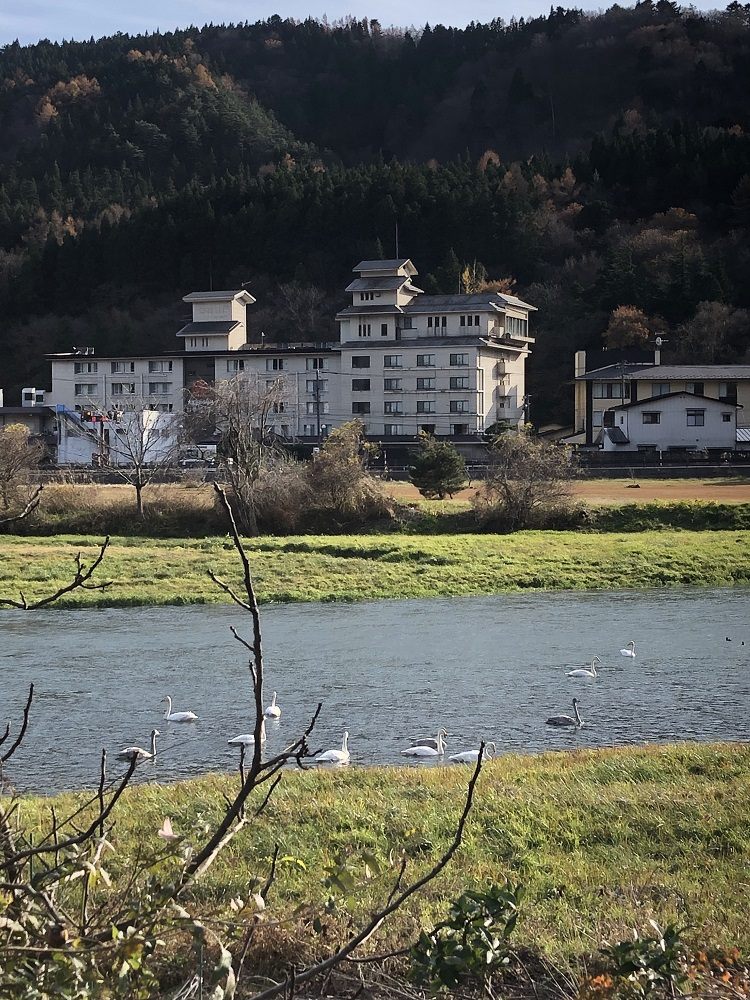 この時期東北には渡り鳥がやってくるそうで、宿のレンタル自転車を借り、近くを流れる「江合川」を散策。川を見渡すと探すまでもなく、たくさんの白鳥が!東京ではなかなか見られない光景に胸が高鳴ります。