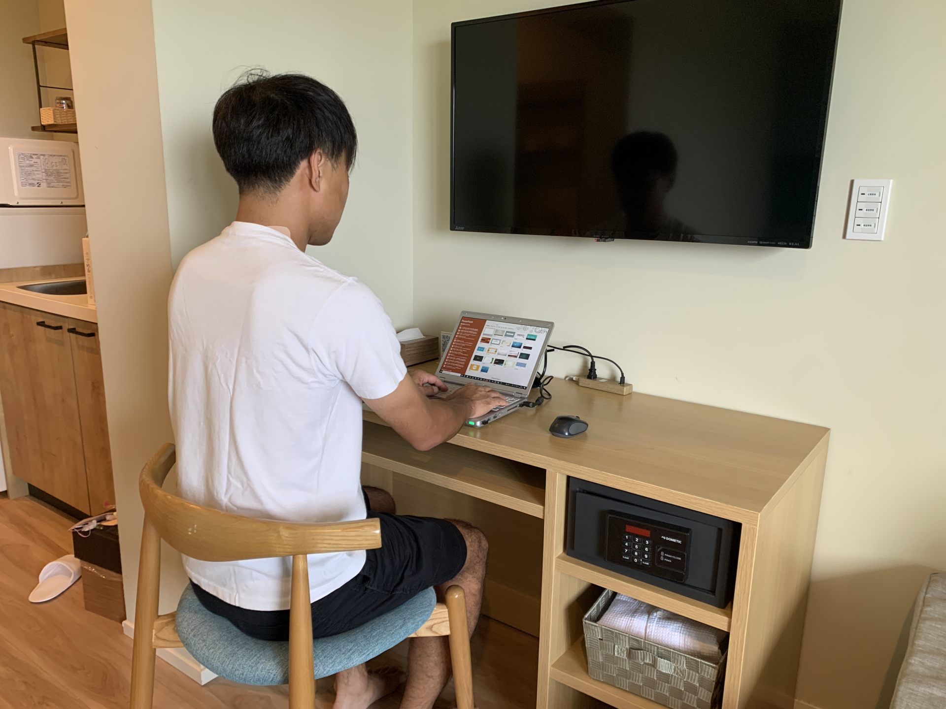 ワークをする日は特に仕事がしやすいホテルが選びました。せっかくなので現地企業ともアポイントを入れてより有意義に過ごせるようにスケジューリング。また、子連れなので部屋に洗濯乾燥機があり、ハリウッドツインスタイルに対応してくれるホテルにするなど、子連れ旅の観点からもホテル選びをしました。