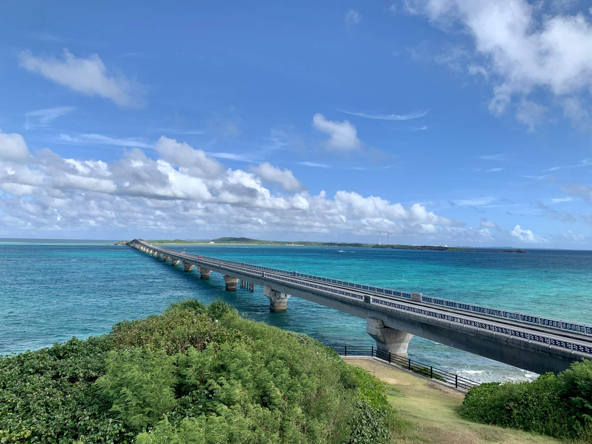 チェックアウト後は池間島に行くことに。池間島は宮古島の北西にあり、池間大橋で繋がっています。中心に池間湿原があり、自然豊かな渡り鳥の楽園で、車を走らせていると道にクイナが飛び出てきました。この池間島と宮古島を繋ぐ池間大橋が最終日ハイライトでした。サンゴが透けて見える透明度が高い青い海。青い空に雲が浮かび、聞こえてくるのは波の音だけ…。宮古島からは周辺の各島に橋が架かっており、一番有名なのが長さ3540mで日本最長の無料橋の伊良部大橋ですが、池間大橋にもぜひ訪れてほしいです。