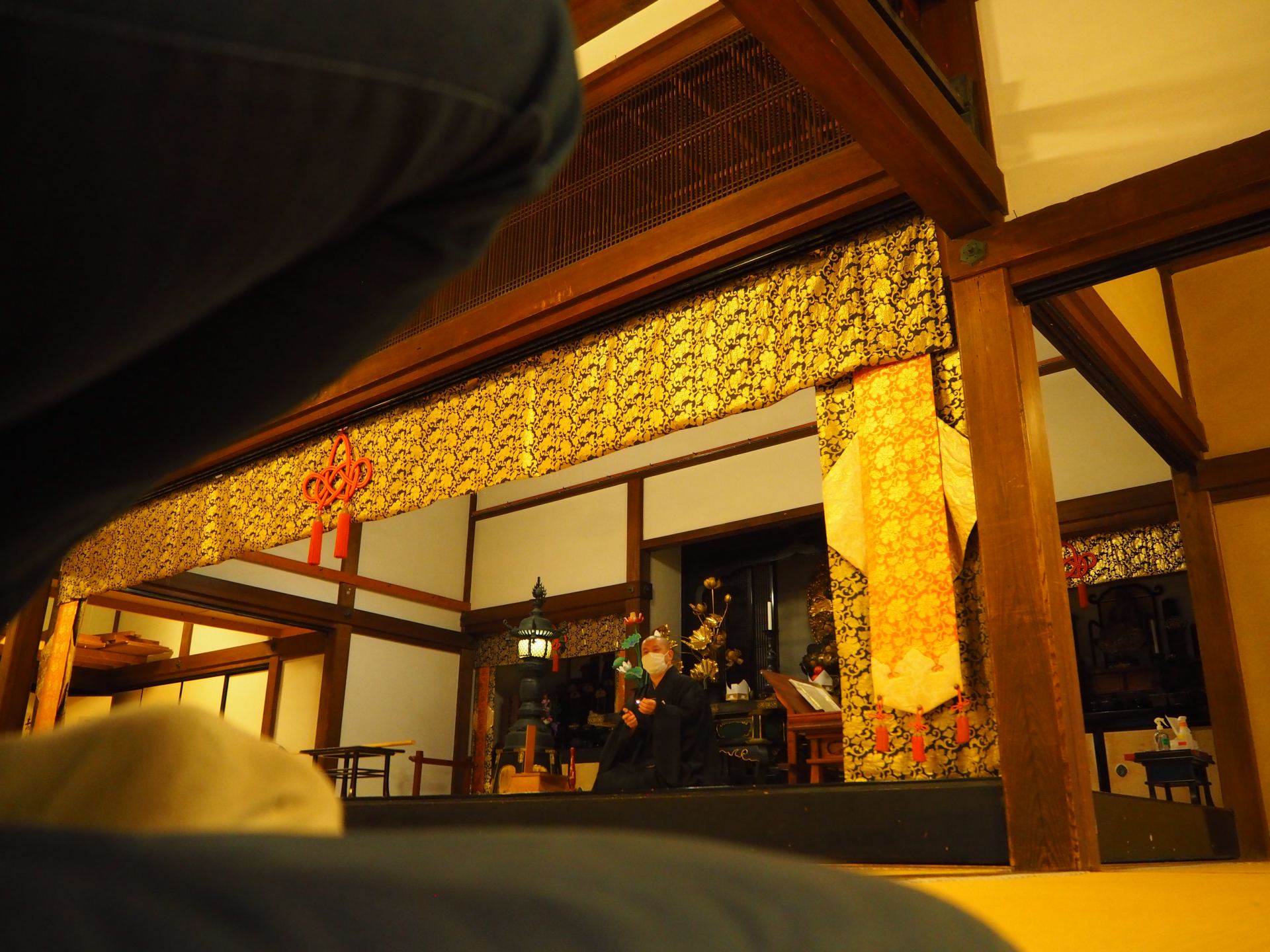 最初は正しい姿勢が定まらずぐらぐら。雑念がめぐったり、次第に足がしびれてきたり、と坐禅に集中できはじめたのは後半の方。次第に、鳥のさえずり、遠くの電車や踏切の音、境内をほうきではく音などが聞こえ始め、お香のにおいや冷たい風を感じ、五感が研ぎ澄まされていく感じがしました。