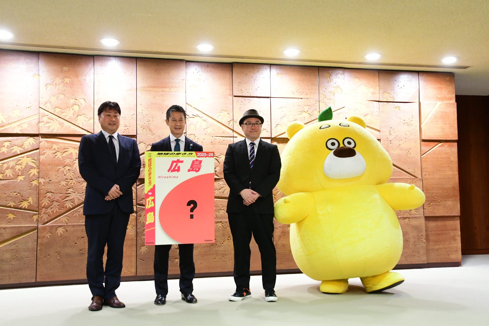 このたび、15タイトル目の「地球の歩き方国内版シリーズ」として、2024年5~6月に『地球の歩き方 広島』を発行することが決まり、2023年12月7日(木)に、「地球の歩き方」編集長の宮田 崇(みやた たかし)と地元タウン誌「TJ Hiroshima」編集長の阿南 征士(あなん まさし)がその報告のため、広島県知事の湯﨑 英彦(ゆざき ひでひこ)氏を訪問いたしました。