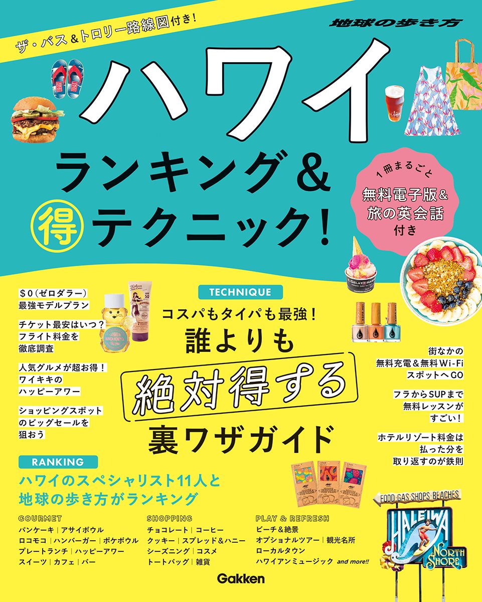 とことんお得にかしこくハワイを楽しむための秘訣が詰まった一冊。最新ゼロダラー(無料)トピックスから、あらゆるシーンで役立つマル得テクニックを網羅。ハワイのスペシャリストが選ぶ「ランキング」はグルメ、おみやげ、プレイと多彩なジャンルでお届け!