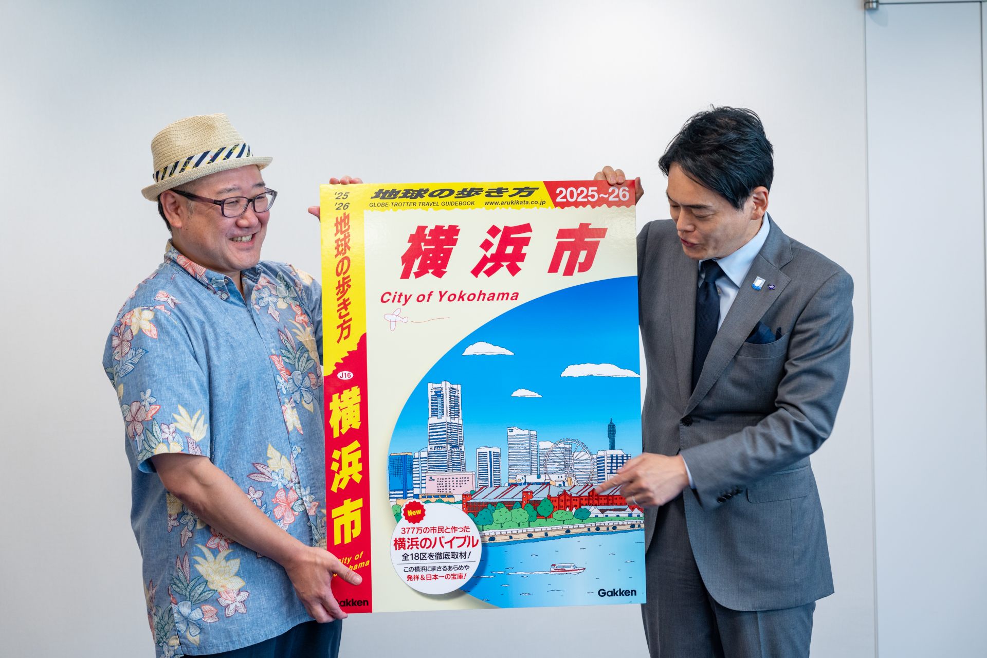 横浜市と株式会社地球の歩き方が連携協定を締結し、『地球の歩き方』では初となる市民参加型で制作した旅行ガイドブック『地球の歩き方 横浜市』が8月1日、ついに発売になりました。横浜の魅力をとことん深掘りしたこのガイドブックは、表紙の風景を市民参加型アンケートの投票で決定。ほかにも横浜あるあるやおすすめスポットなど市民の声が満載の1冊となっています。そんな横浜愛あふれる本書の発売を記念して、横浜の魅力について山中市長と横浜市出身の宮田編集長が語り合いました。