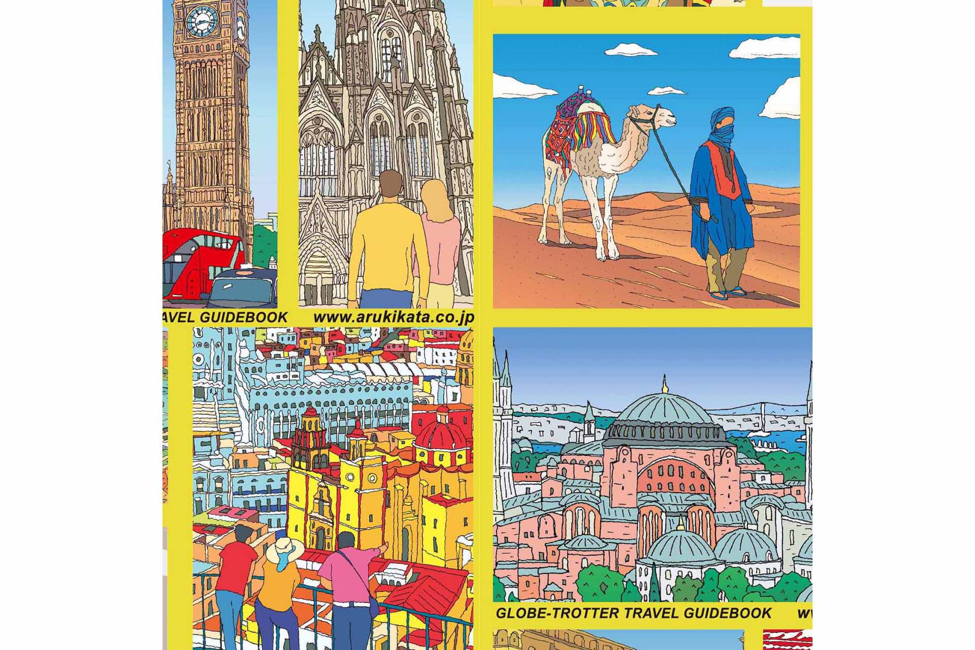 創刊以来45年間、同じカバーデザイナーがイラストを手掛けており、「地球の歩き方」といえばこのイラスト!と思われる方も多いのでは? お馴染みの「地球の歩き方」の表紙のイラストを組み合わせたデザインが、「ステッカー」や「旅の思い出保管ファイル」などのグッズになって登場します。