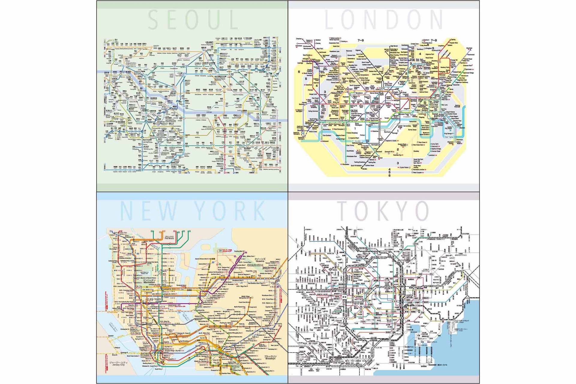 「地球の歩き方」を手にして旅をされた方は、地図や路線図のページを頼りに街歩きを楽しまれたのではないでしょうか? 人気の4都市「ニューヨーク」「ロンドン」「ソウル」「東京」の路線図が旅で活用度大の「トートバッグ」や「衣類圧縮袋」などに変身!
