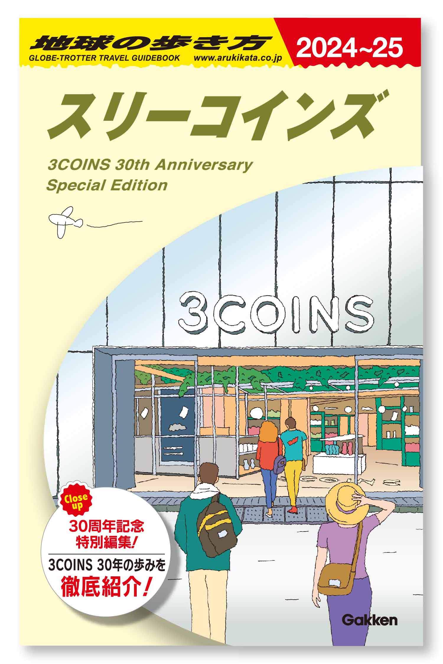 3COINS店舗にて、「地球の歩き方」コラボアイテムをご購入されたお客さま合計3万名様に、30周年記念冊子「スリーコインズの歩き方」をプレゼント!(なくなり次第終了) 3COINSの歴史や雑学、店舗や商品など様々な情報が満載です。今まで知らなかった「3COINS」がまるわかり! ファンにはたまらない一冊です。