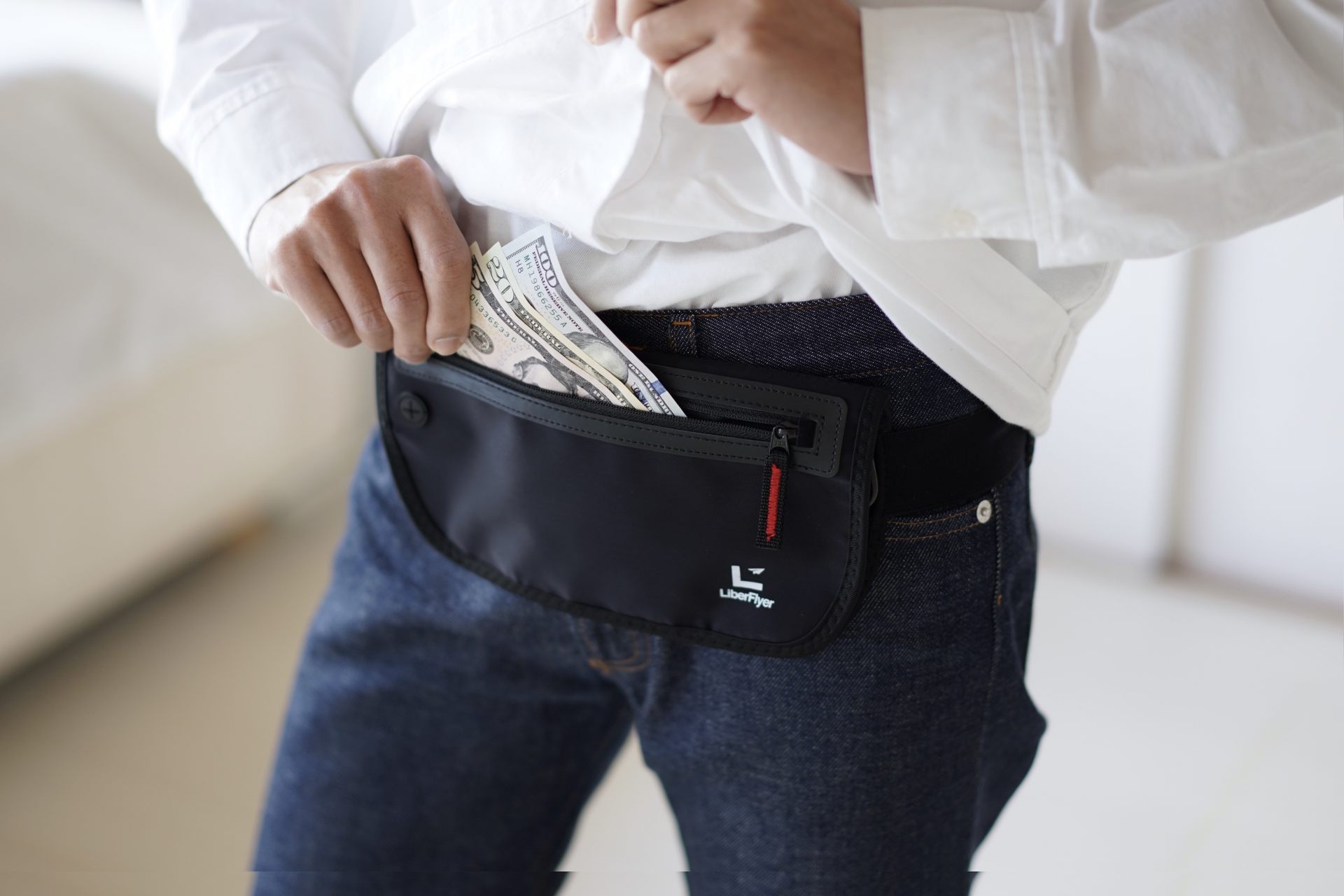 そんな場合にも活躍してくれるのが、セキュリティーポーチ。使い方は簡単で、貴重品をポーチのなかに入れくるっと腰に巻くだけ。上から服で覆えばすっぽりと隠せるため、ひったくりのリスクなどを極限まで下げてくれます。