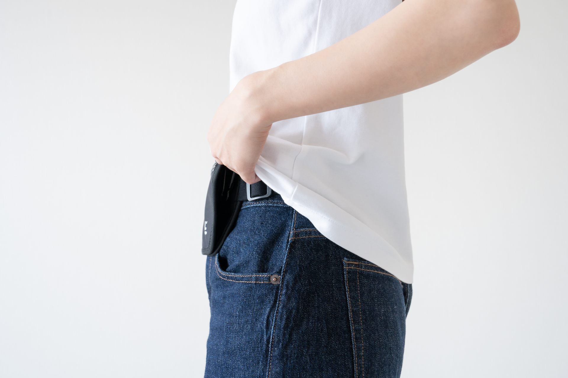 ベルト部分には「High Fit ゴムベルト」と呼ばれる、程よい太さと柔らかさを備えた特別なベルトを採用。65~95cmまで自由に調節することができ、幅広い体型をカバーしてくれます。そのためズレが少なく、腰にしっかりとフィット。思わず身に着けていることを忘れてしまうほどです。街歩きで長時間つけるという日でも、疲れにくく楽しむことができますよ。