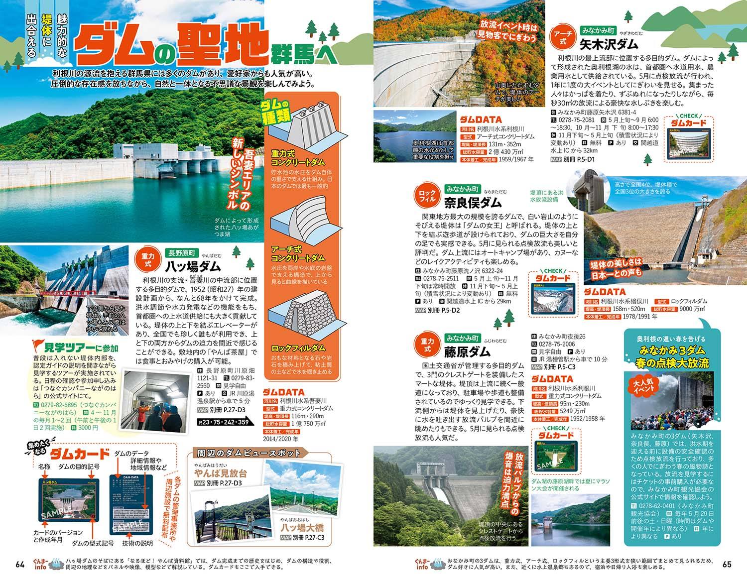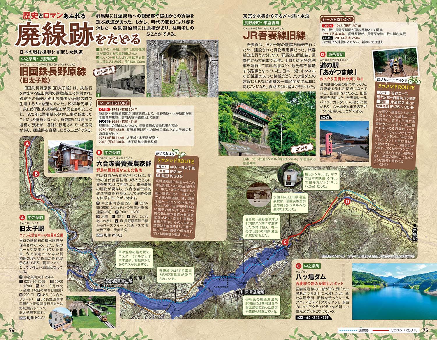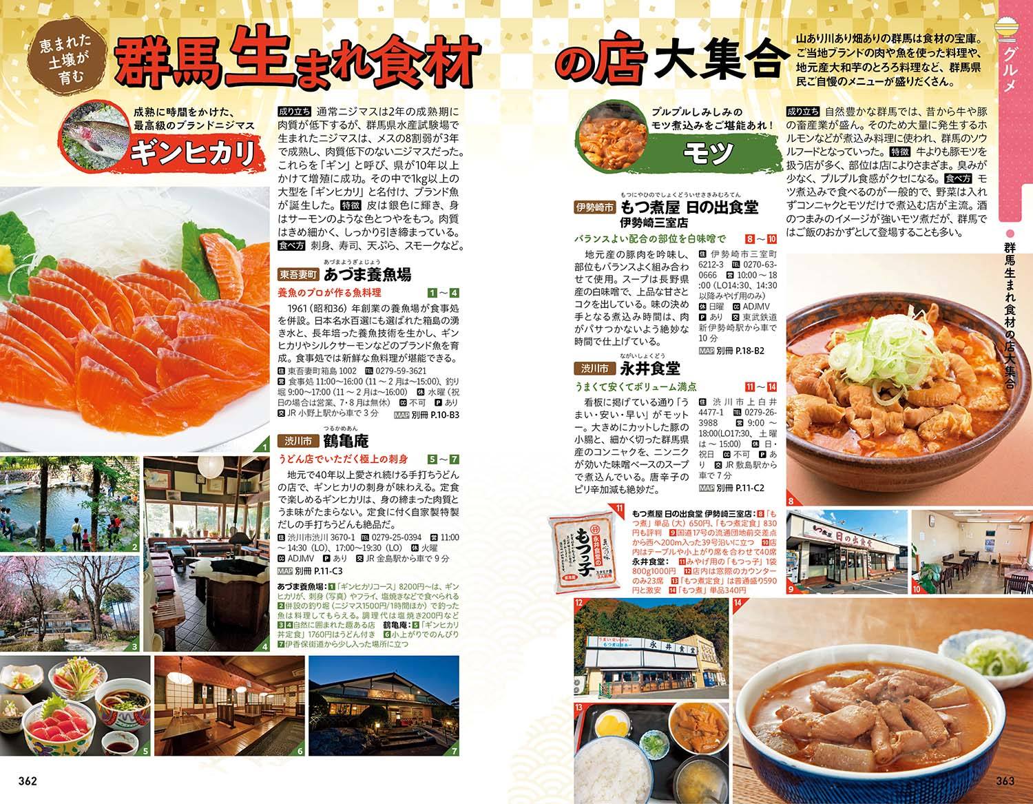 516ページの誌面には、天下の名湯草津をはじめとする温泉情報はもちろんのこと、県民熱愛の粉もんグルメやわかさぎ釣りにラフティングなど群馬ならではのアクティビティ情報など、旅先としての群馬の魅力をこの一冊に詰めこみました。旅人のおともにはもちろん、県内在住者の地元再発見にもお役立ち。知れば知るほど群馬が好きになる情報満載です。