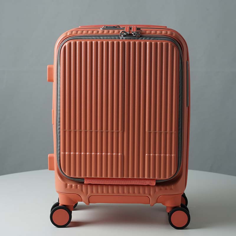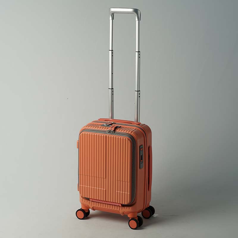 容量約21Lの小型キャリーケース。軽量でタフなボディに加え、TSAダイヤルロックや電車・坂道でも安心のブレーキシステム搭載など、機能性に優れています。また、フロントオープンタイプなので、スーツケースを立たせたまま必要なアイテムをサッと取り出せます。