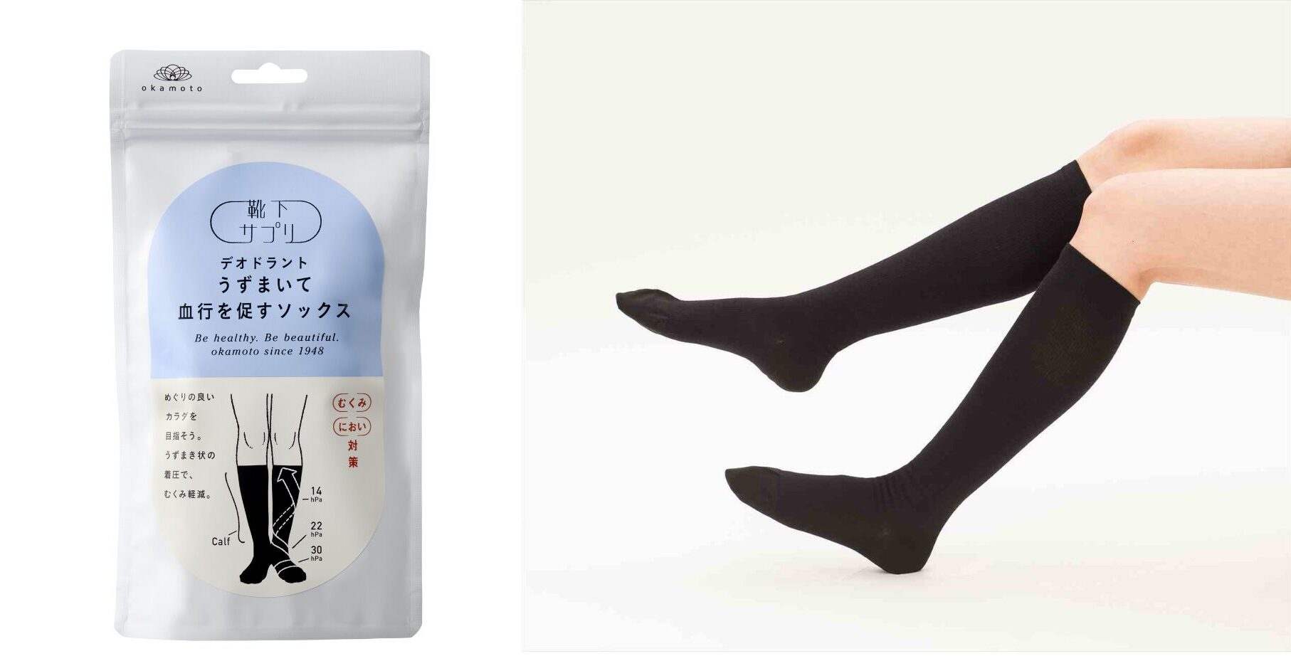つちふまずから足の筋肉に沿ってうずまき状に圧をかけるスパイラル設計によって血行を促進し、むくみや冷えを和らげる機能性ソックス。しめつけすぎないフィット感と柔らかな肌触りが心地よく、旅行などで長時間座る場合やむくみが気になるときにぴったりです。消臭機能付きなので、長時間の着用でも臭いやムレを気にせず快適!