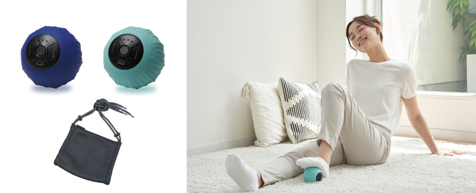 球体なので、使い方自由自在な振動リラックスボール。最大回転数は1分間に約5500回とパワフルで、腰や背中などの気になる部位に当てて体重をかけるだけで手軽にセルフケアできます。表面の凸凹を使ってほぐすように動かすと深部にもアプローチが可能! コードレス&コンパクトなサイズ感なので、旅先に持ち運んで使うのにも便利です。付属のアシストカバーを使うと手の届かない箇所もケアできます。