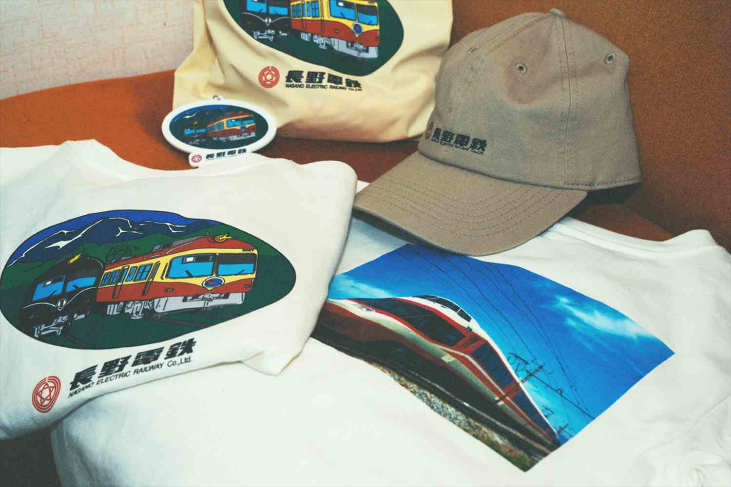 長野電鉄を代表する2000系と1000系を、信州の山々を背景にイラストに落とし込んだデザインと、小田急ロマンスカーとして活躍した車両を譲り受け、長野電鉄の特急「ゆけむり」として運行している1000系をプリントしたデザインのアイテムを展開! 世代を超えて愛されている名車の魅力を表現しています。Tシャツはキッズの展開も。