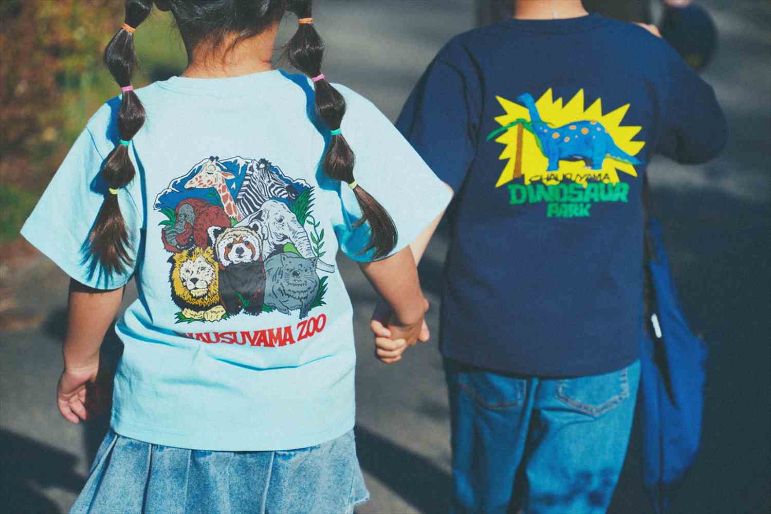 長野市南西部の茶臼山の斜面を生かした県内最大級の動物園。人気の動物たちと茶臼山動物園のロゴや、お馴染みの恐竜をイラストで表現したアイテムが揃います。Tシャツはキッズサイズの展開もあります。