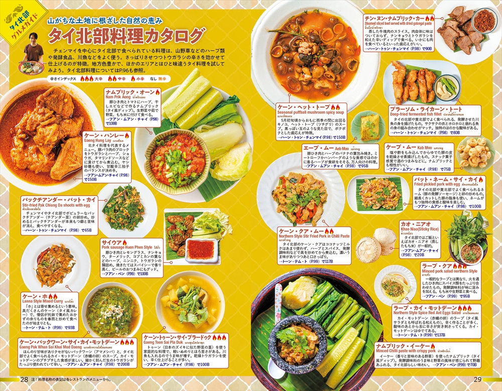 一般的なタイ料理とは一線を画す、発酵文化とハーブが織りなす「北タイ料理」は、地元の人々が通う名店を厳選してご紹介。珍しい「赤アリの卵(カイ・モットデーン)」のスープや、雨季の初期が旬のキノコ「ヘット・トープ」の料理などディープな食材も注目です!