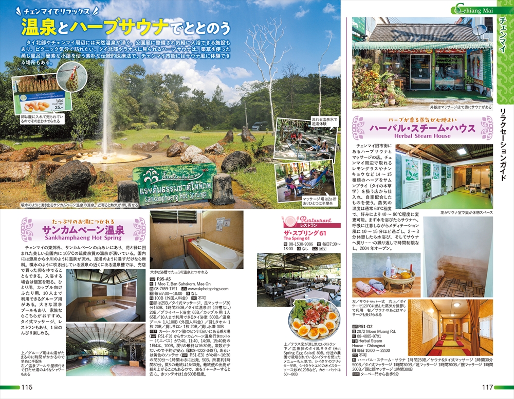 本書では人生で一度は参加したい伝統的なタイ北部のお祭りをはじめ、独特な色彩が特徴的なお寺巡り、カレー味のスープ麺「カオ・ソーイ」や希少食材「赤アリの卵」のスープといったディープなグルメ情報、さらには地元の人々に愛される伝統ハーブサウナまで、編集者が歩いて見つけ出した、検索だけではなかなかたどり着けない「リアルなチェンマイの魅力」を詰め込みました。